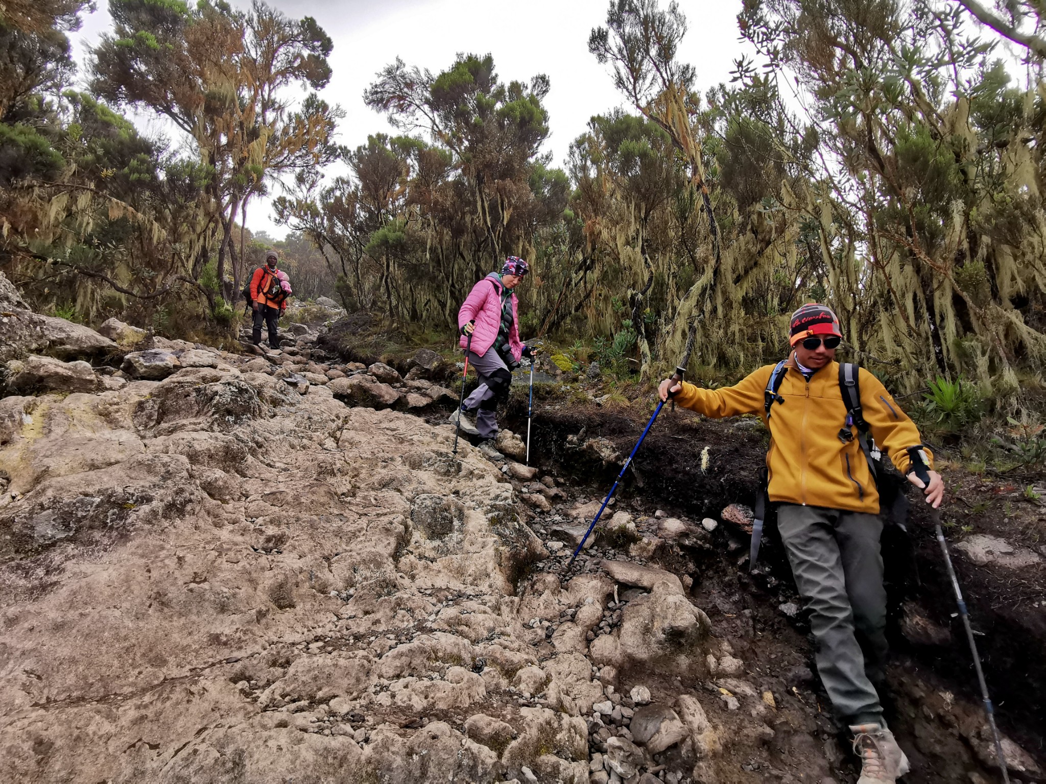 所以,如果你只是登山,而不考虑游猎的话,组团要组成双数才合适。小费的均摊,挑夫是不必考虑的,因为是每人有三个挑夫;所谓均摊,实际上摊的是向导和厨师。而向导,是2名游客配一个向导。像我们最初是5个人,配了3名向导,后来增加1人,变成6人,还是3名向导;而厨师就不用说了,像我们这样的小团队,通常都是一名厨师,大家均摊费用就OK了。