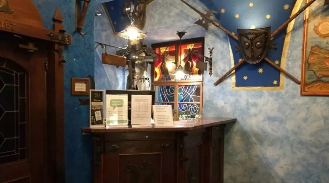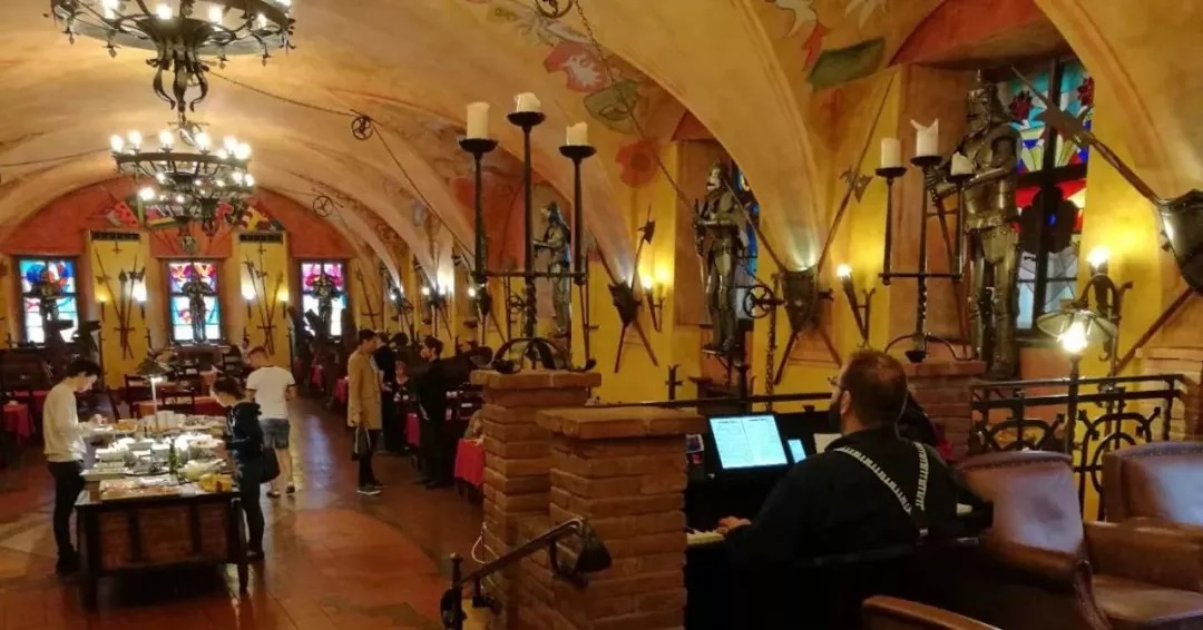里面装修特别带感,摆有很多中世纪的铠甲和武器,家族旗子,除此之外还有小帅哥可以养眼。