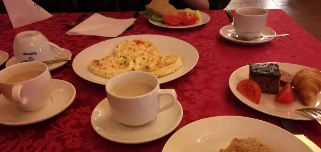 早餐是很传统的捷克式,吃到了大饼和不知道叫什么的鸡蛋。