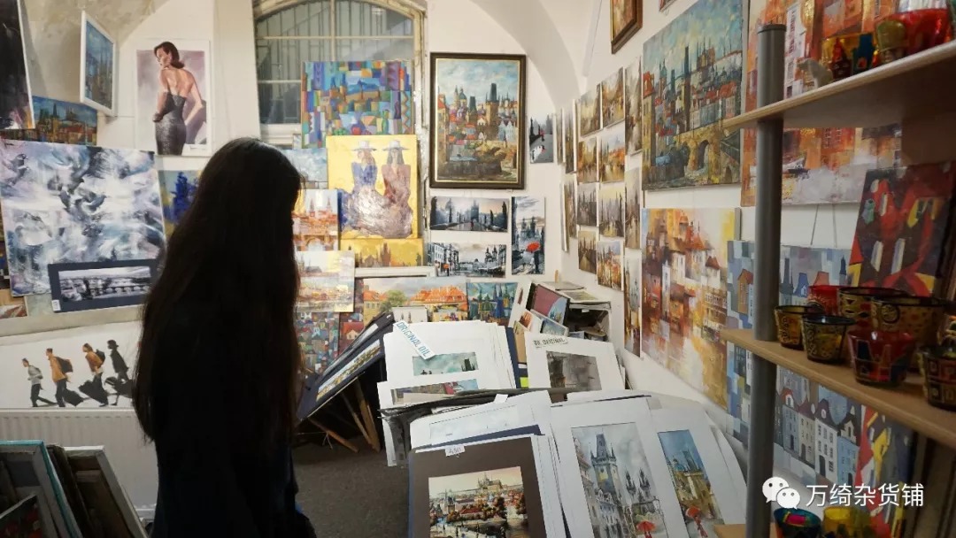 路上还有几家卖画的店,继续逛下去就能发现其实布拉格有很多这种店,不过我们初到,所以觉得很给力的进去逛了逛。房间里本来是不让照相的,不过之前我在那边看啥都喜欢想买,但又因为路途原因不好带,很伤心的只买了一幅,店长姐姐就让我们拍了。