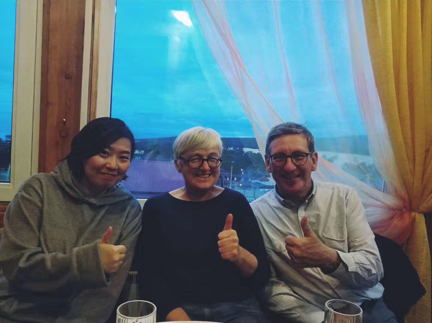 晚上他请我们去到他们酒店喝他们自己带来的酒。