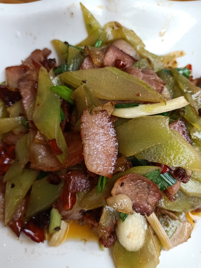 我们住的地方斜对面胡同的腊肉炒笋,超好吃,也不贵,我们两个人吃了两盘。