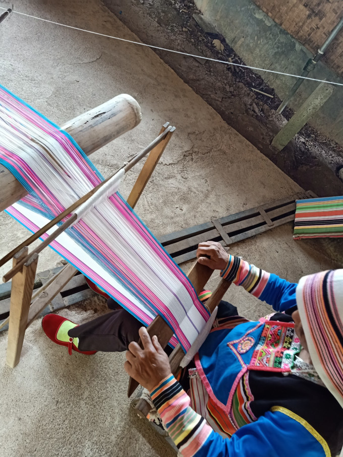基诺山寨里的老人织布,颜色感觉有点单调。