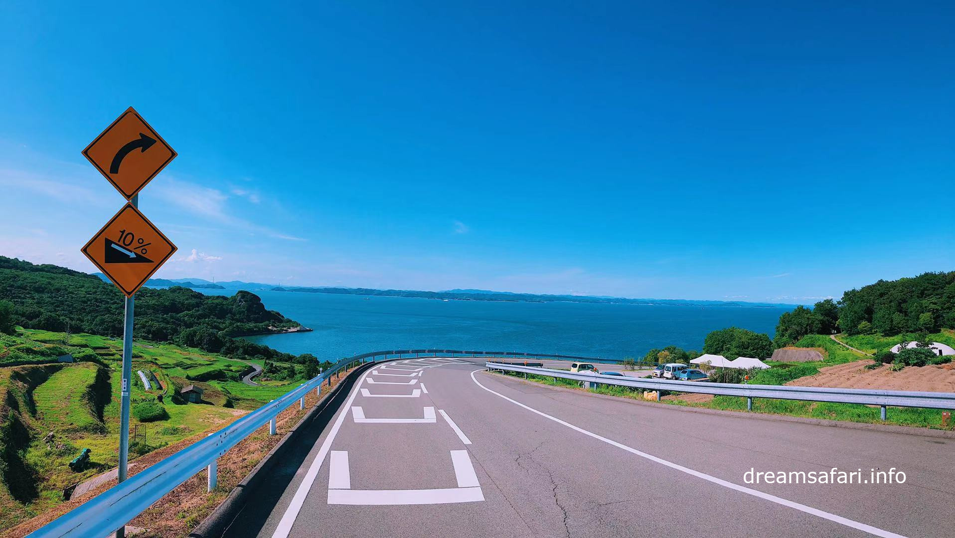 看完丰岛美术馆出来,意外发现门口的那段海边弯路竟然没有人在拍照了,赶紧抓拍一张,美得简直要让人落泪啊: