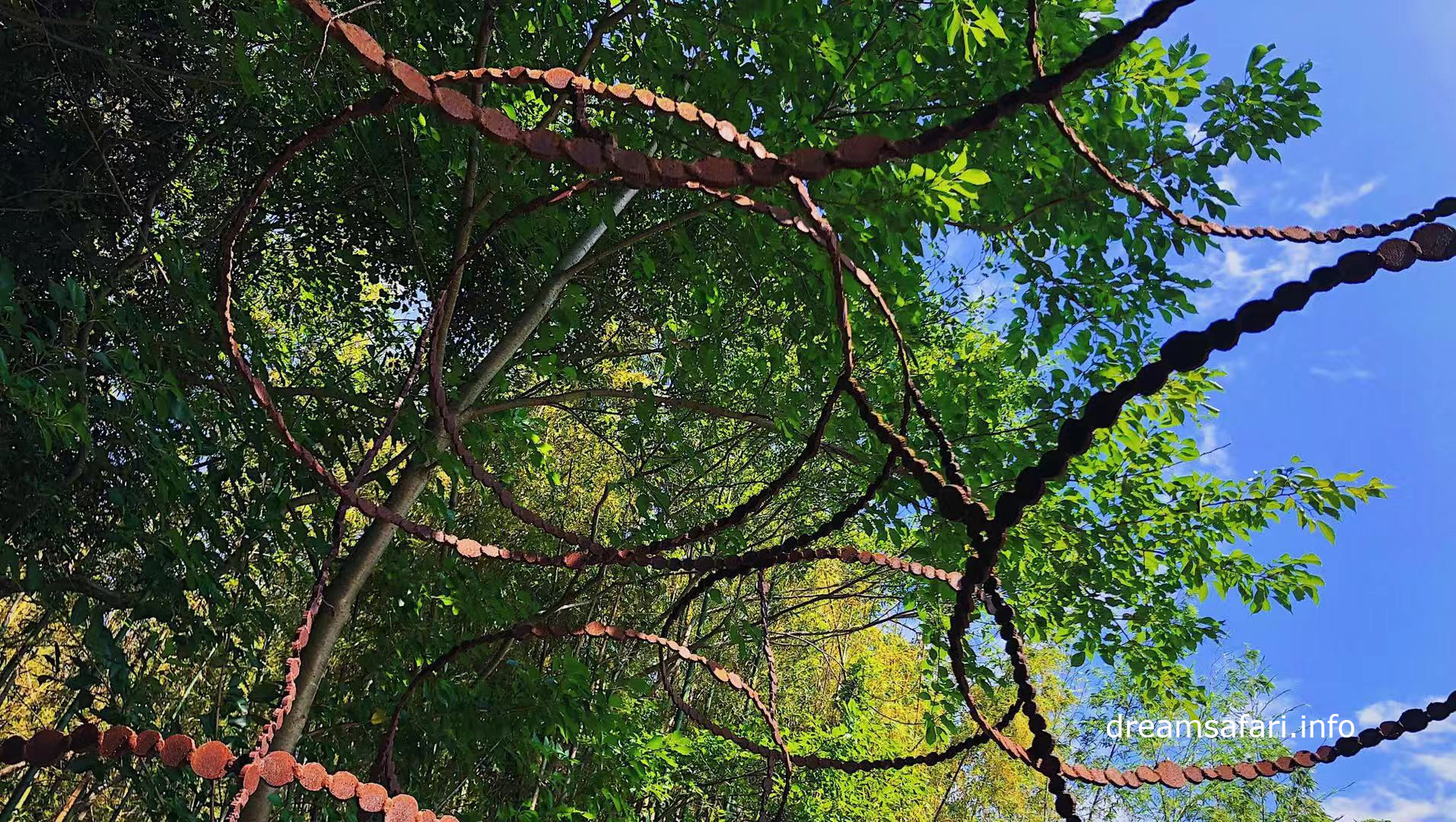 看完这个,步行去窃窃私语的森林需要大概20分钟左右的上坡路。路不难走,而且穿行在森林中也不会晒得很厉害。和前一天晚上认识的台湾朋友一路走一路聊,也没有觉得路途遥远。走着走着忽然隐隐约约听到一阵悦耳的风铃声,就知道马上就要到啦。