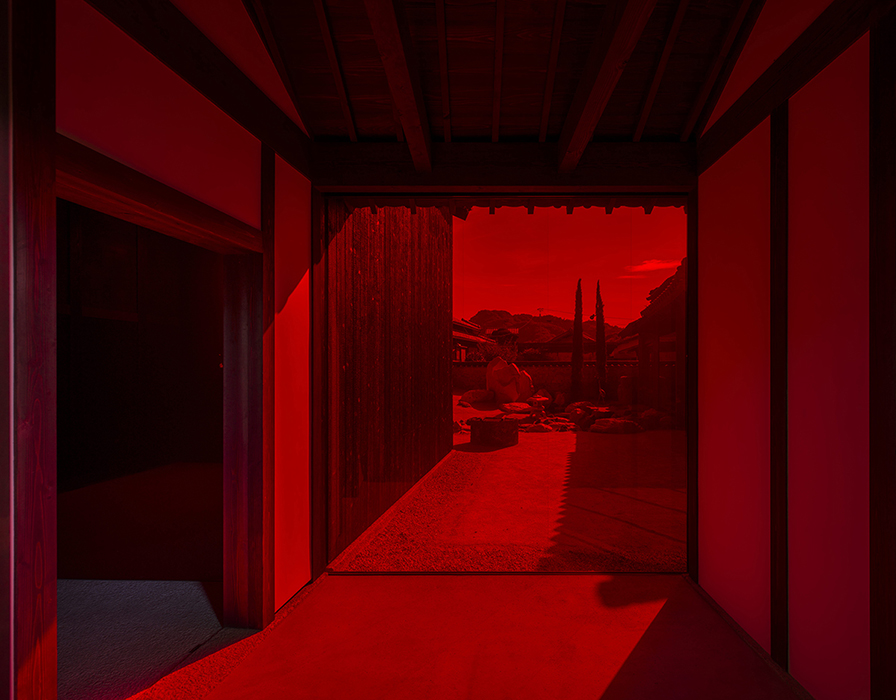 另外就是建筑师对于红色玻璃的运用实在是太得我心了。如此大块的,超级高饱和度的颜色让人第一反应就是波普艺术,感觉是呼应了横尾忠则的设计风格。但是与此同时,丰岛横尾馆又有一部分的区域是隐藏在阴暗之中的,与这些明亮鲜艳的色彩彻底区分开(比如母屋的二楼)。在阴暗的地方陈列的画作更多的是展现了人们内心的阴暗和恐惧吧。