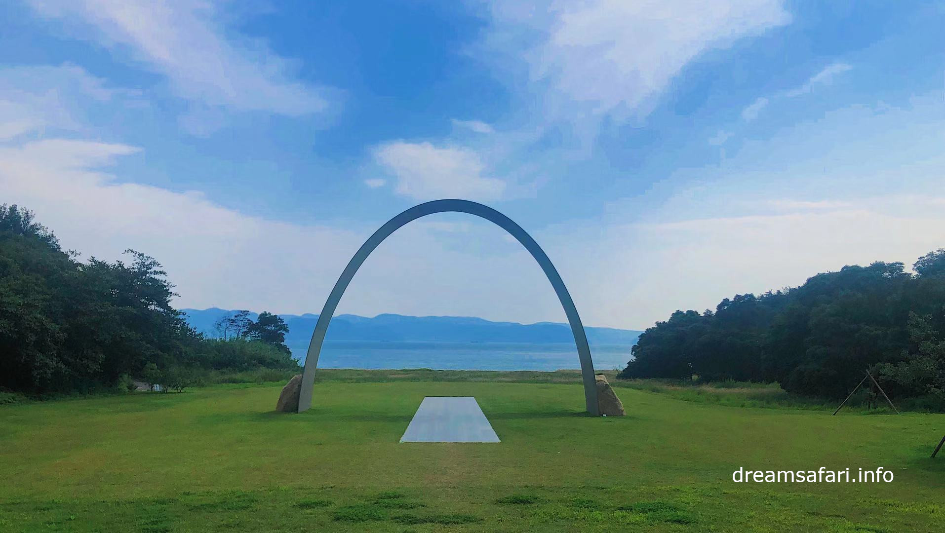 地中美术馆采取完全预约制,必须事先在网上购票,然后按照约定的时间来参观。我到得比较早,于是先去了李禹焕美术馆。李禹焕美术馆门前的一大片草坪其实也是一个拍照圣地,透过“无限门”可以看到美丽的濑户内海:
