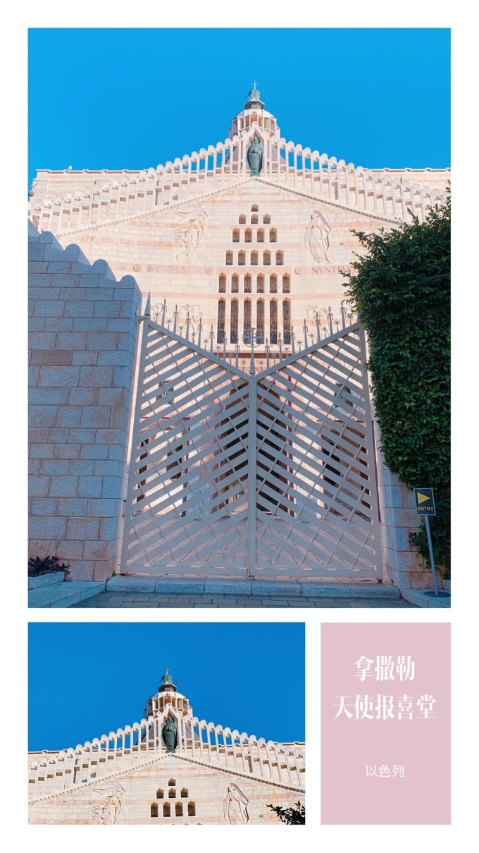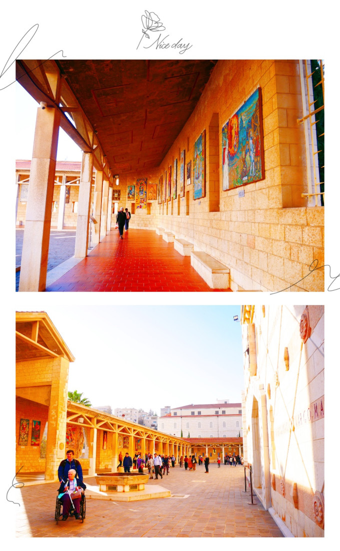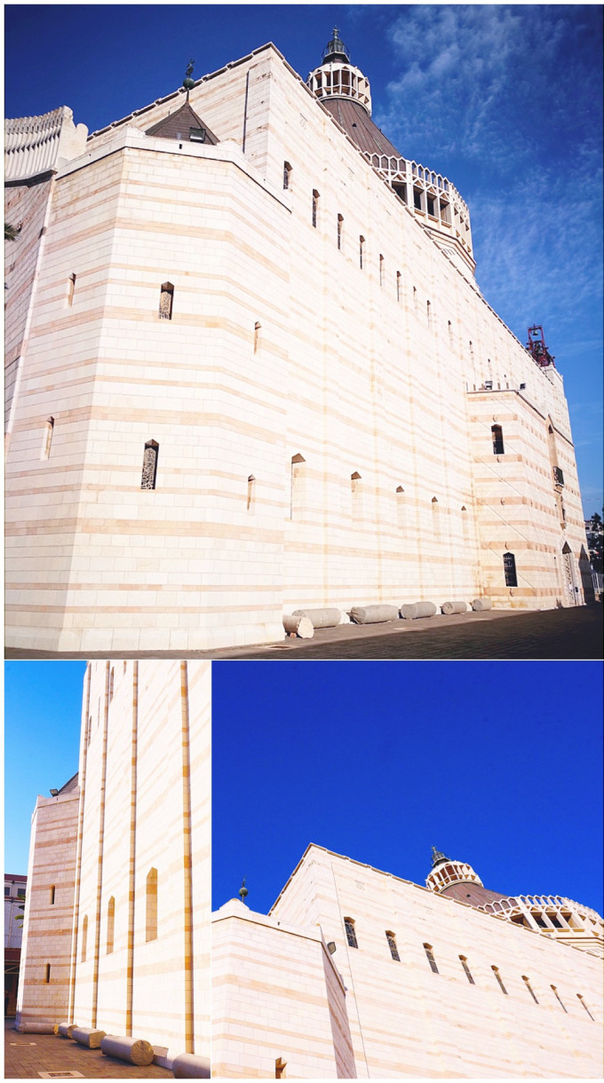天使报喜堂的外观简约而纯白,就像在歌颂伟大的圣母玛利亚,就如同她的气质一般,圣洁而美丽。以色列所有的建筑都没有奢华或繁琐的外观,包括所有的教堂,都是简约而朴素的风格,即使作为中东地区最大的教堂,天使报喜堂依然是以简约而不简单的风格屹立在这片土地上,丝毫不曾渗透出一丝一毫的华丽奢侈,哪怕它对于基督教而言是如此重要而神圣的所在,这也丝毫步行者世界各地前来朝圣的人们跨越千山万水来到拿撒勒,专程到此悼念圣母玛利亚。我作为一个非基督徒,也依然对这位母亲充满了敬佩之情。