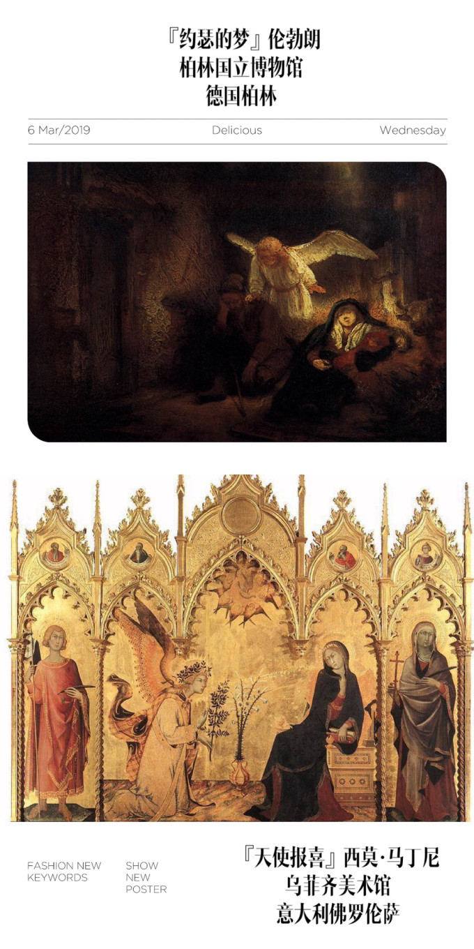 天使报喜,拉丁语为Annuntiatio Domini,英语为Annunciation,在基督教中这是一个典故,指天使向圣母玛利亚告知她将受圣灵感孕而即将生下耶稣,出自《圣经·新约·路加福音》1:26-38。又名“受胎告知”、“圣母领报”。事件发生于依撒伯尔(新教称以利沙伯)怀孕六个月之际。据说是在某一天,天使加百列出现在玛利亚家并宣布,她将生下“至高者的儿子”。木匠约瑟很快就知道了未过门的妻子玛利亚未婚先孕的消息,就想“暗暗的把她休了”。天使加百列在约瑟的梦中显现,让他不要怕,并告诉他玛利亚怀的是圣灵的孩子。但是玛丽亚来说,这消息等同于是晴天霹雳,因为这意味着一个只有十几岁的童贞女在她的豆蔻年华里就要背上与人通奸淫乱的污名,接下来她不仅要背负人人唾骂的巨大耻辱,还要面对被众人乱石砸死的悲惨命运。