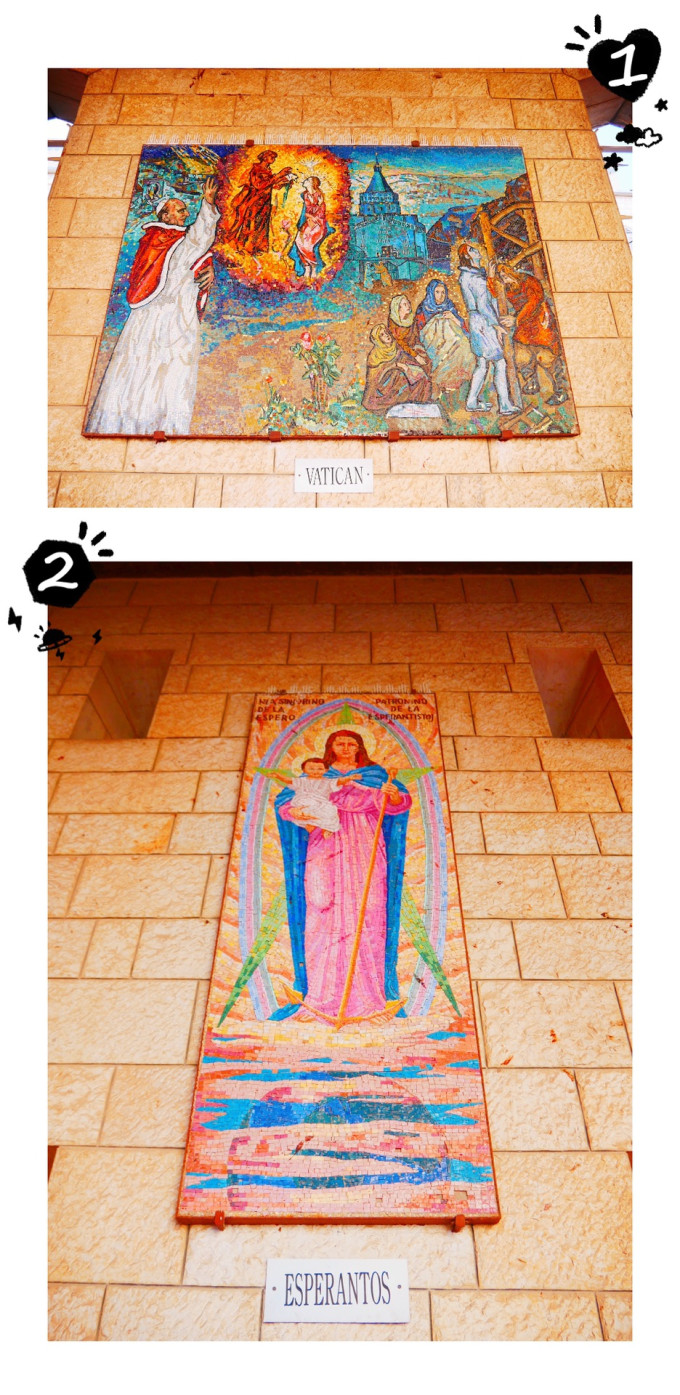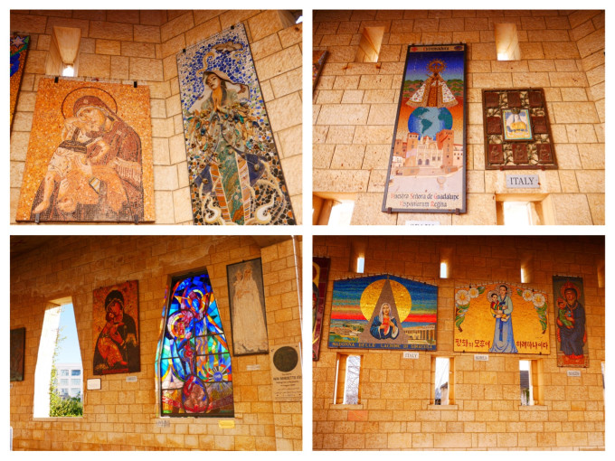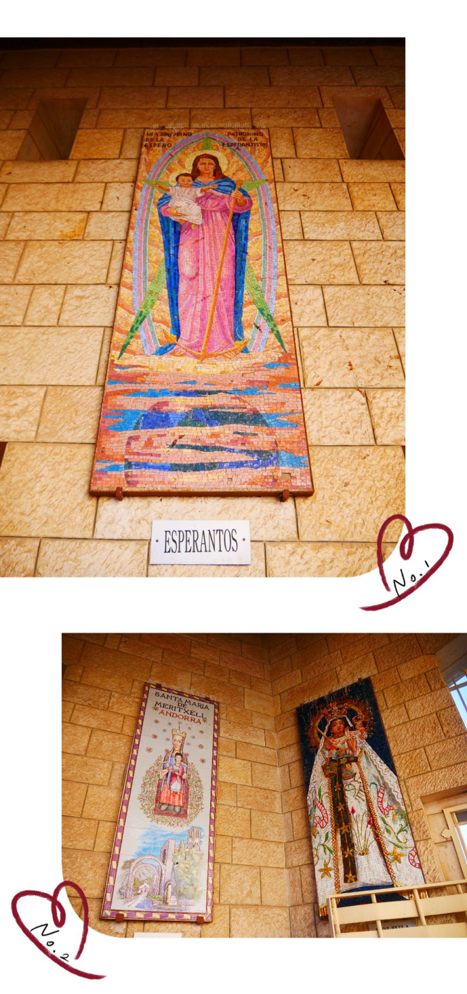 天使报喜堂的最大特点,是教堂内部和外侧回廊上展示的来自世界各国的圣母画像。与人们印象中一贯的慈爱温柔的圣母形象不同,这些画像不仅艺术风格各异,就连圣母的样貌也都是各国人种的样子。一瞬间,我似乎有了一种的错觉,仿佛玛利亚也具备了大能和神通,能够化身千万,同时在世界各地养育幼小的基督。
