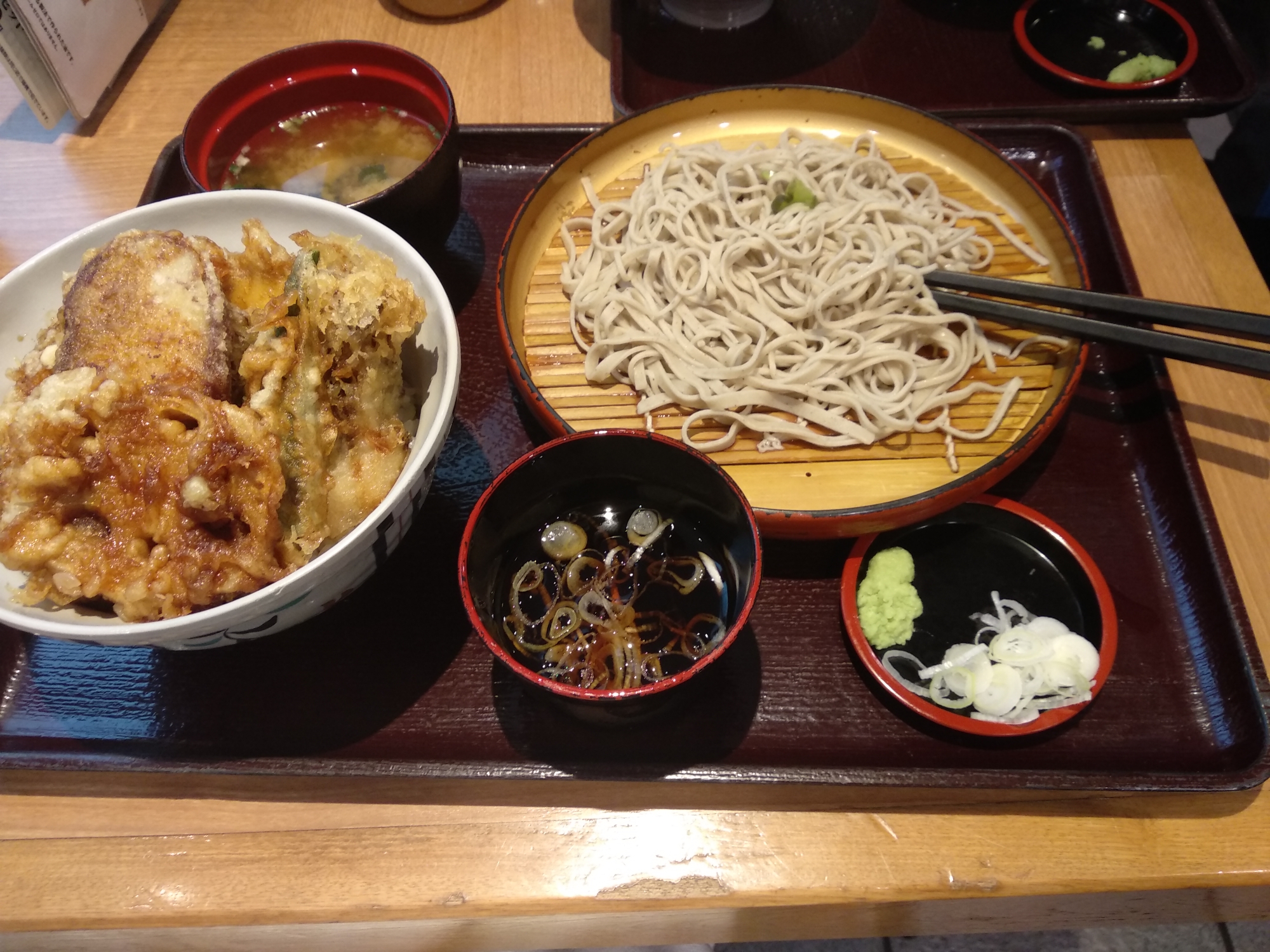 晚饭在大众点评选了间天妇罗。价格并不贵,我的这个套餐才800yen。吃法颇有讲究,把冷面沾入调配好的酱料再吃。