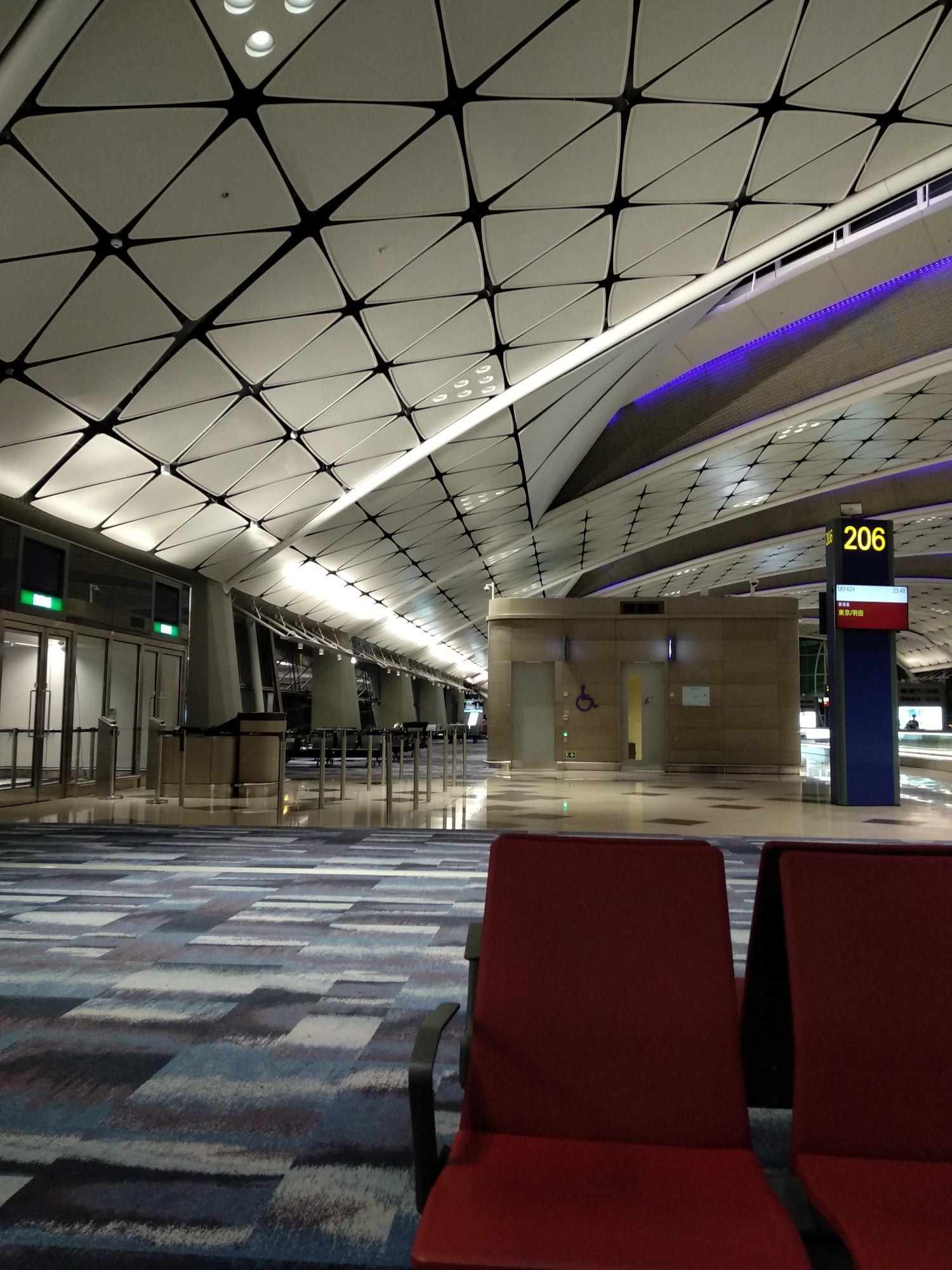 到达香港机场,一出来便安检,然后按指示乘小地铁,很快就找到登机口了。(如果乘船去香港机场记得办船票退税)