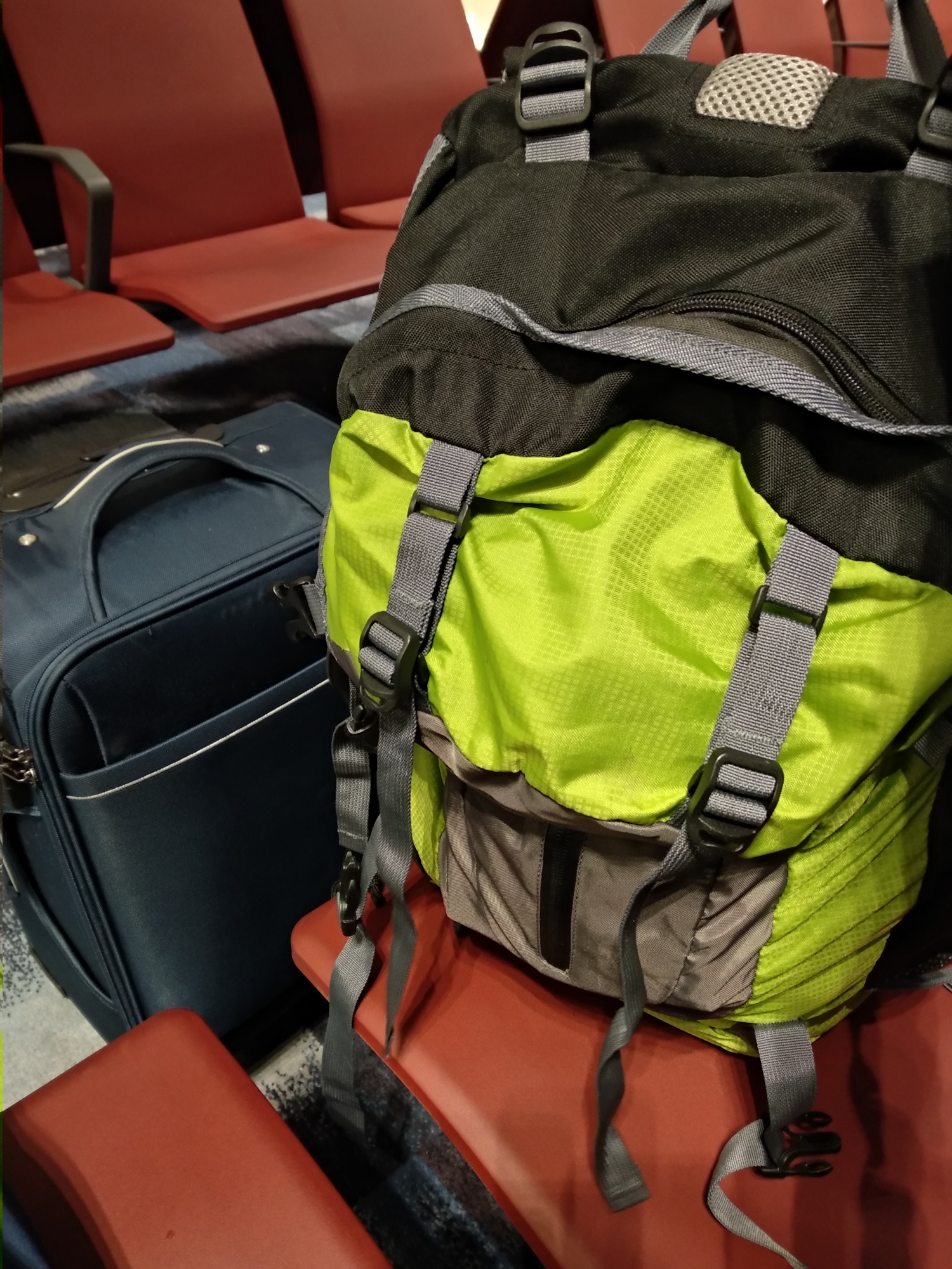 我的行李,一个20寸的行李箱+1个65L的登山包。免去了下机后等托运的麻烦。