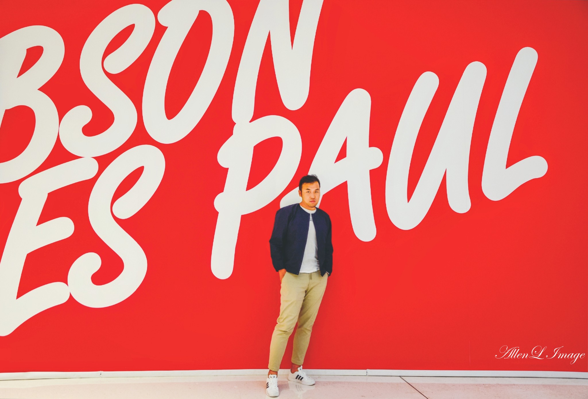 乐器墙一侧也是非常热闹,Gibson Les Paul的吉他橱窗旁有一片色彩鲜明的红墙,是不少人来万象城的必打卡地。