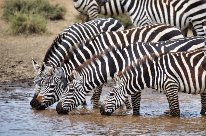 ↓河对岸悠闲喝水且岌岌可危的斑马们。