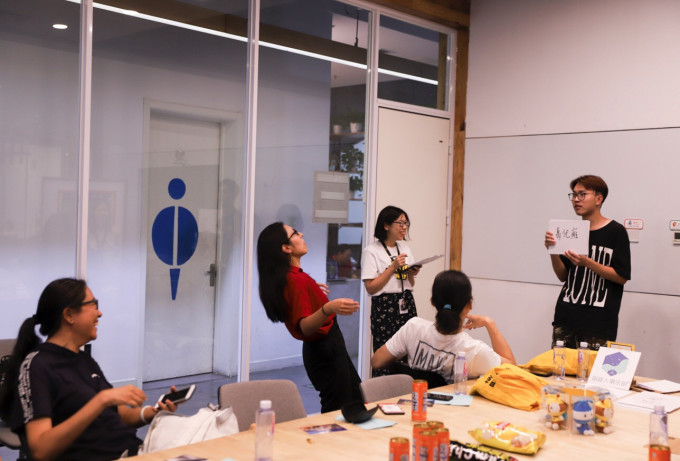 我到达的时候,破冰环节正在进行中,我要猜到对面的韩哲是什么标签。要说的,韩哲是指路人问答6月积分赛我组的队员,但因为没更新微信联系人资料,ta的头像一直是一个穿婚纱的妹子,我就一直以为韩哲是女的,结果当我看到对面坐着一个看起来非常老实巴交的男性时,呃,我之前还想问ta要不要和我一个房间呢。你看,我连ta是男是女都不知道,我怎么猜的出ta的标签。于是两个全错了。。。
