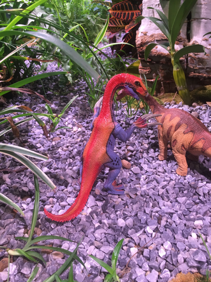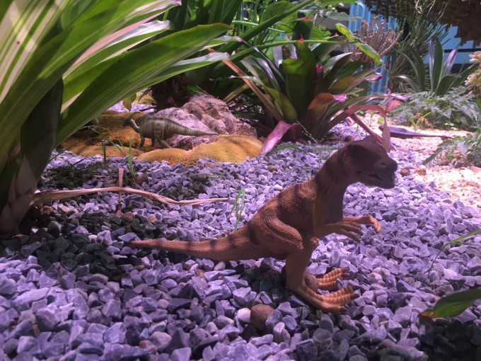 窝里这回是我第二次来,上次来的时候主题还是一片菠萝的海,这回已经换成侏罗纪公园了。拍了几张恐龙照片发给业余做恐龙模型评测固定发b站的老公,老公表示恐龙还是档次差点,要是pnso或者reber牌子的更好。在他balabala给我讲解恐龙模型时,冷哼一声不理他了。