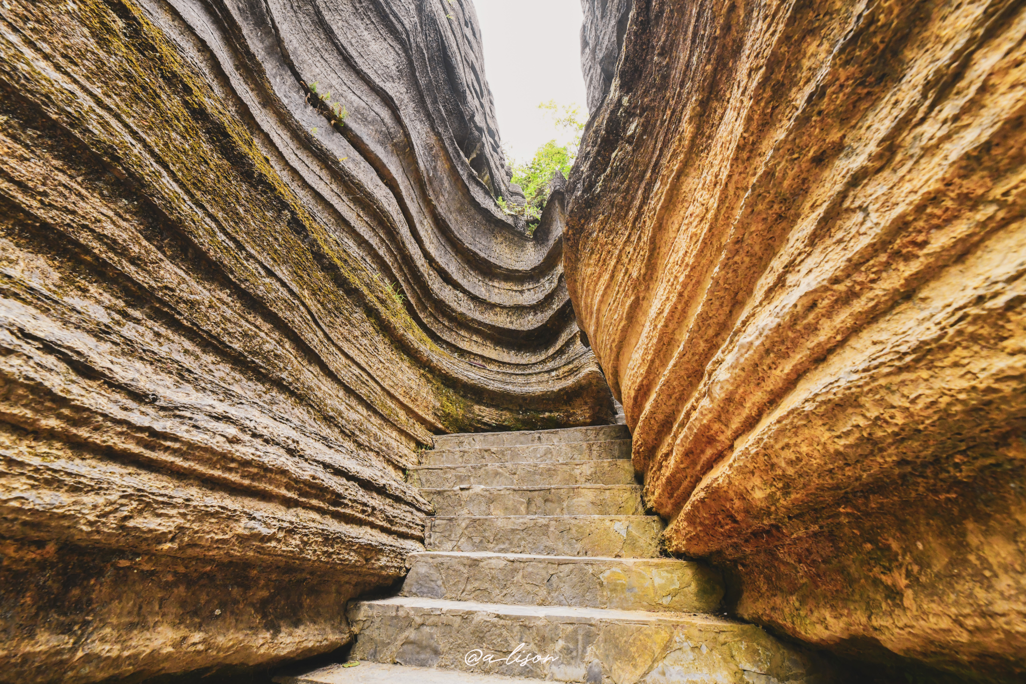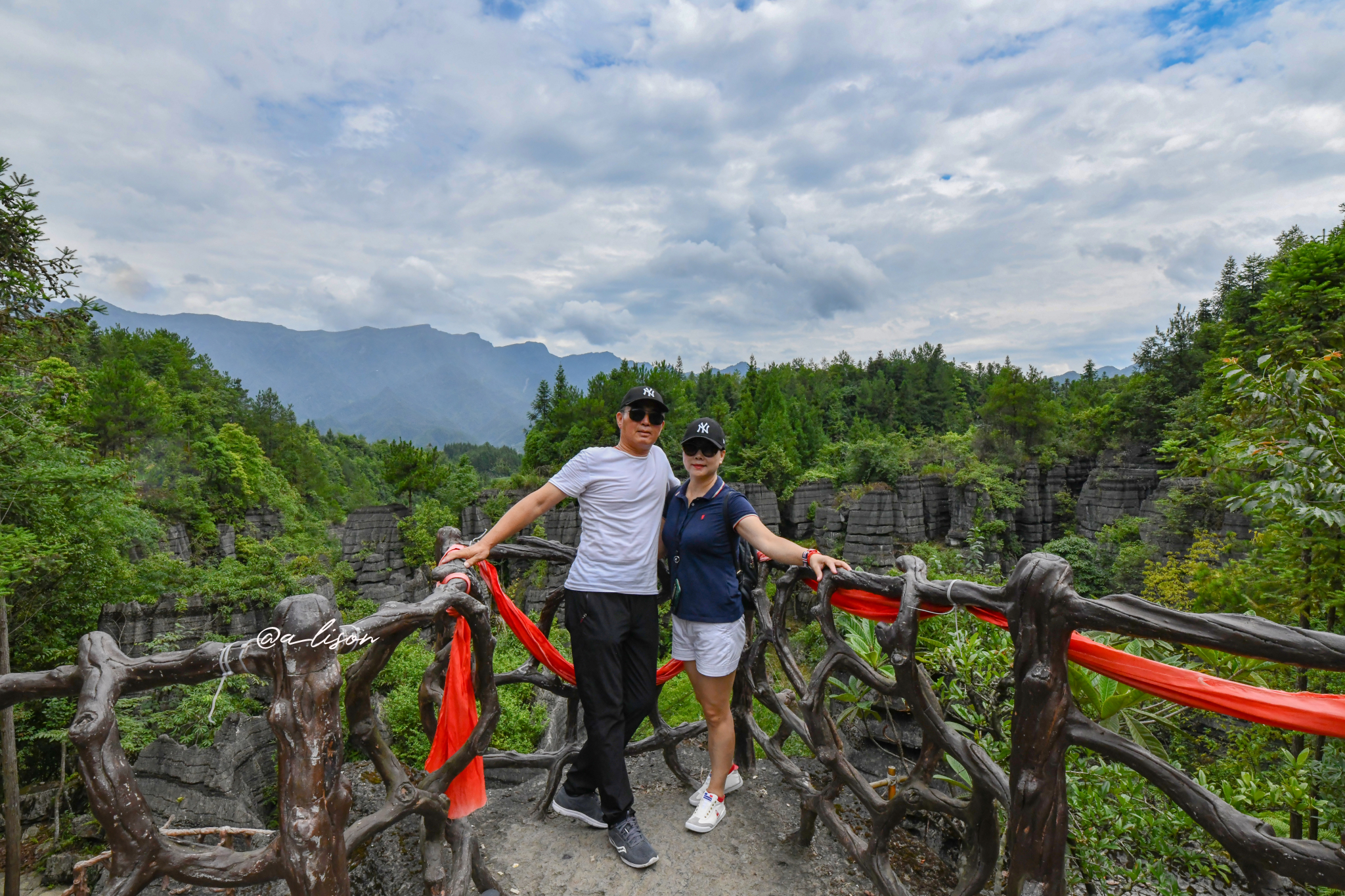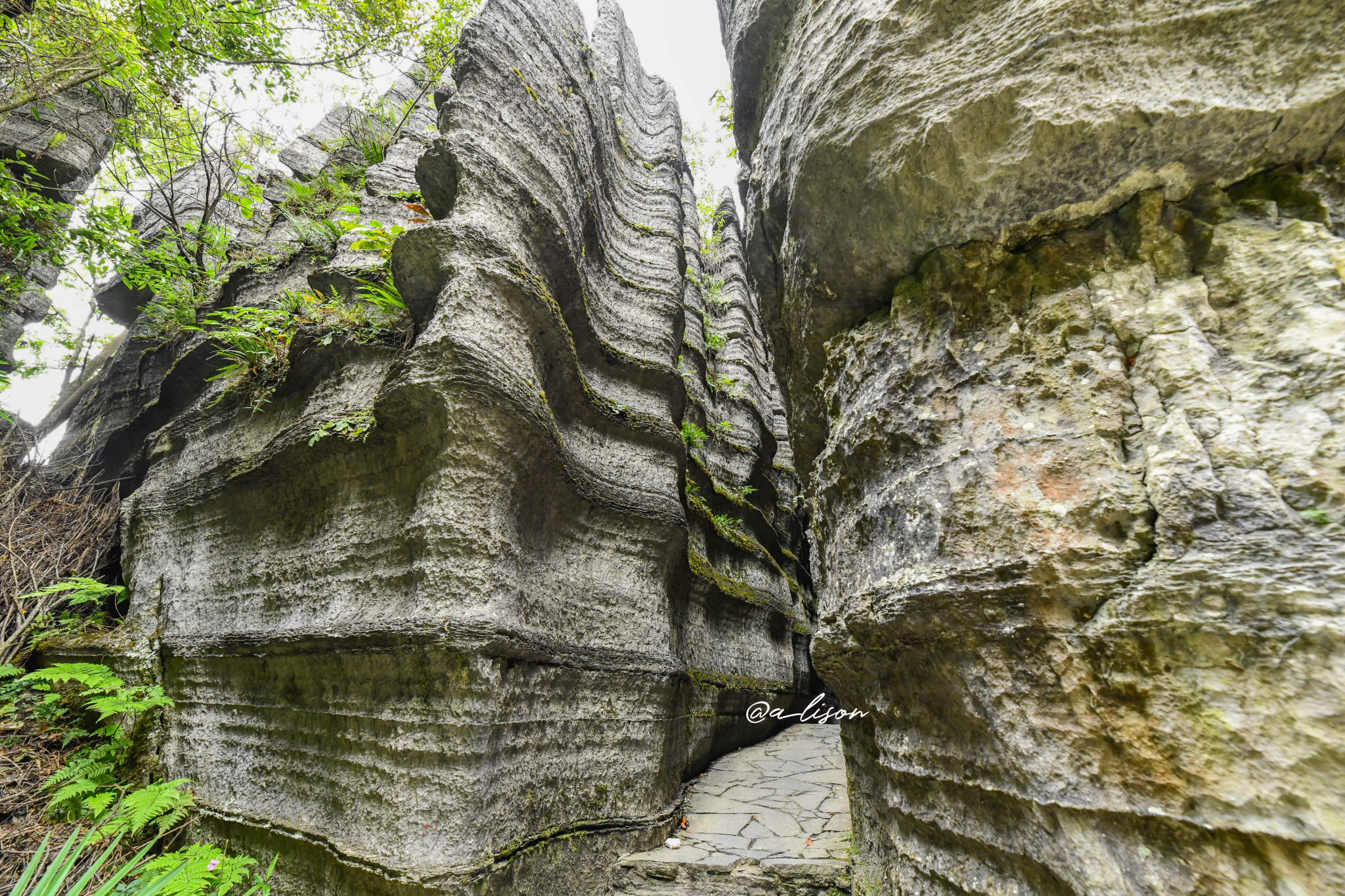 目前开放的有青龙寺、莲花寨、磨子沟、九龙汇四大景区。我们是直接坐接驳车在莲花寨下车,莲花寨是四个景区里我认为最好看也是最值得看的景区,特别是里面犀牛沟,绝对是天然氧吧+超凉空调区域,凉飕飕啊凉飕飕!七八月最热的时候到那去避暑蛮好的。不过因为是石林风景区,所以很多楼梯处很陡峭,接近90度角下坡,比较锻炼身体。而且如果碰到刚下过雨有雨水冲刷过,有的路段会比较湿滑所以也要特别注意些,防止滑倒摔伤。