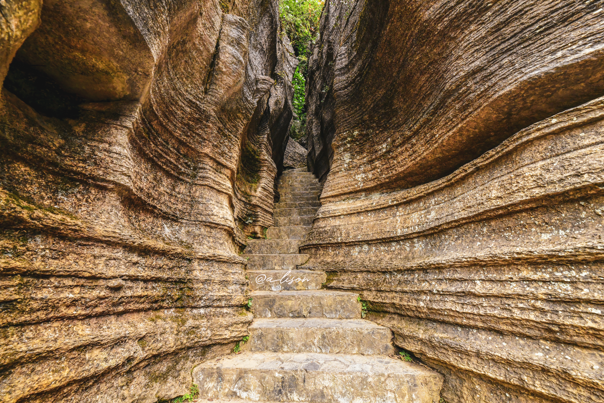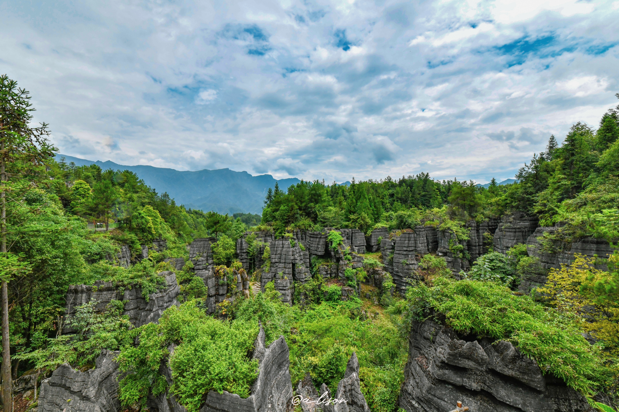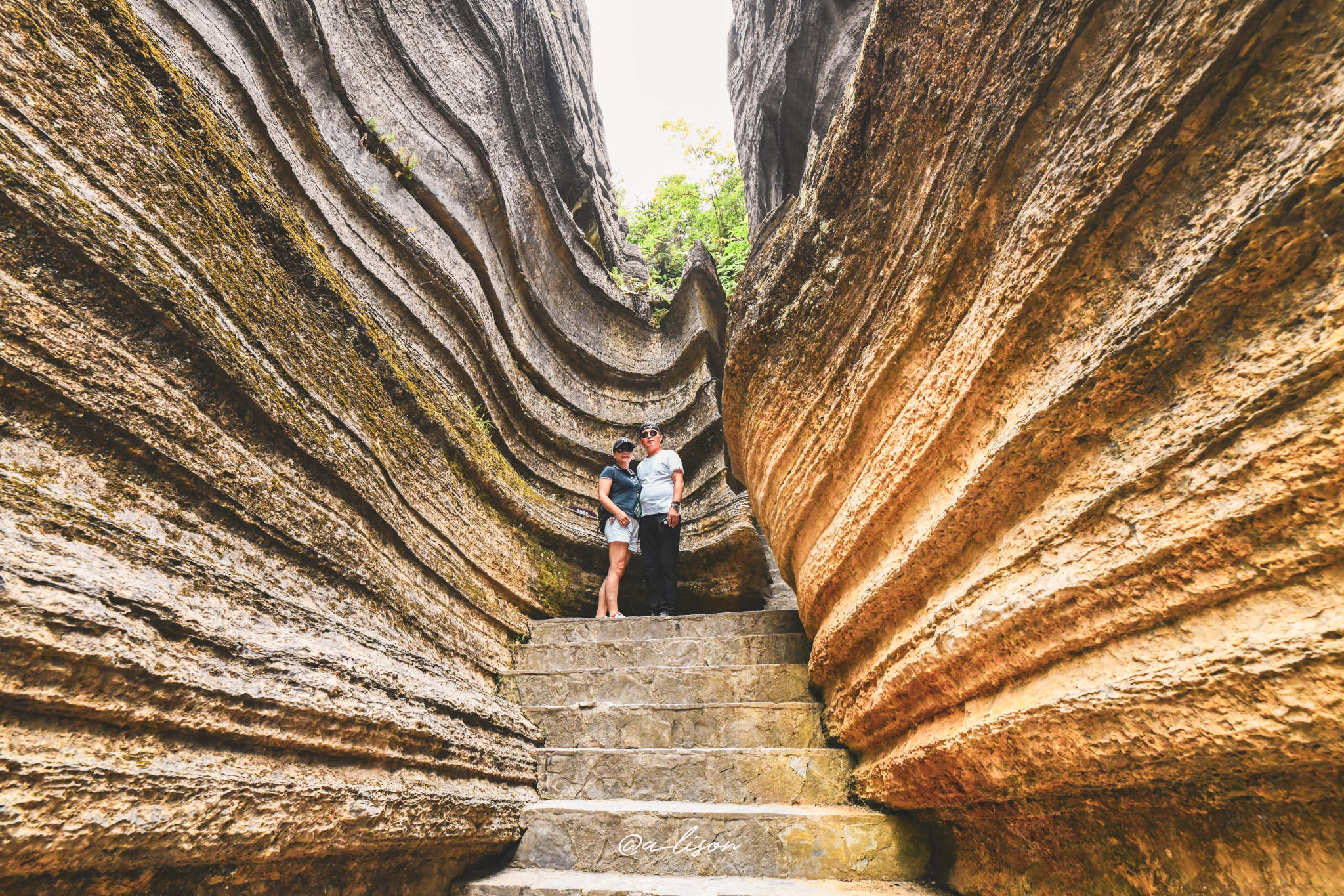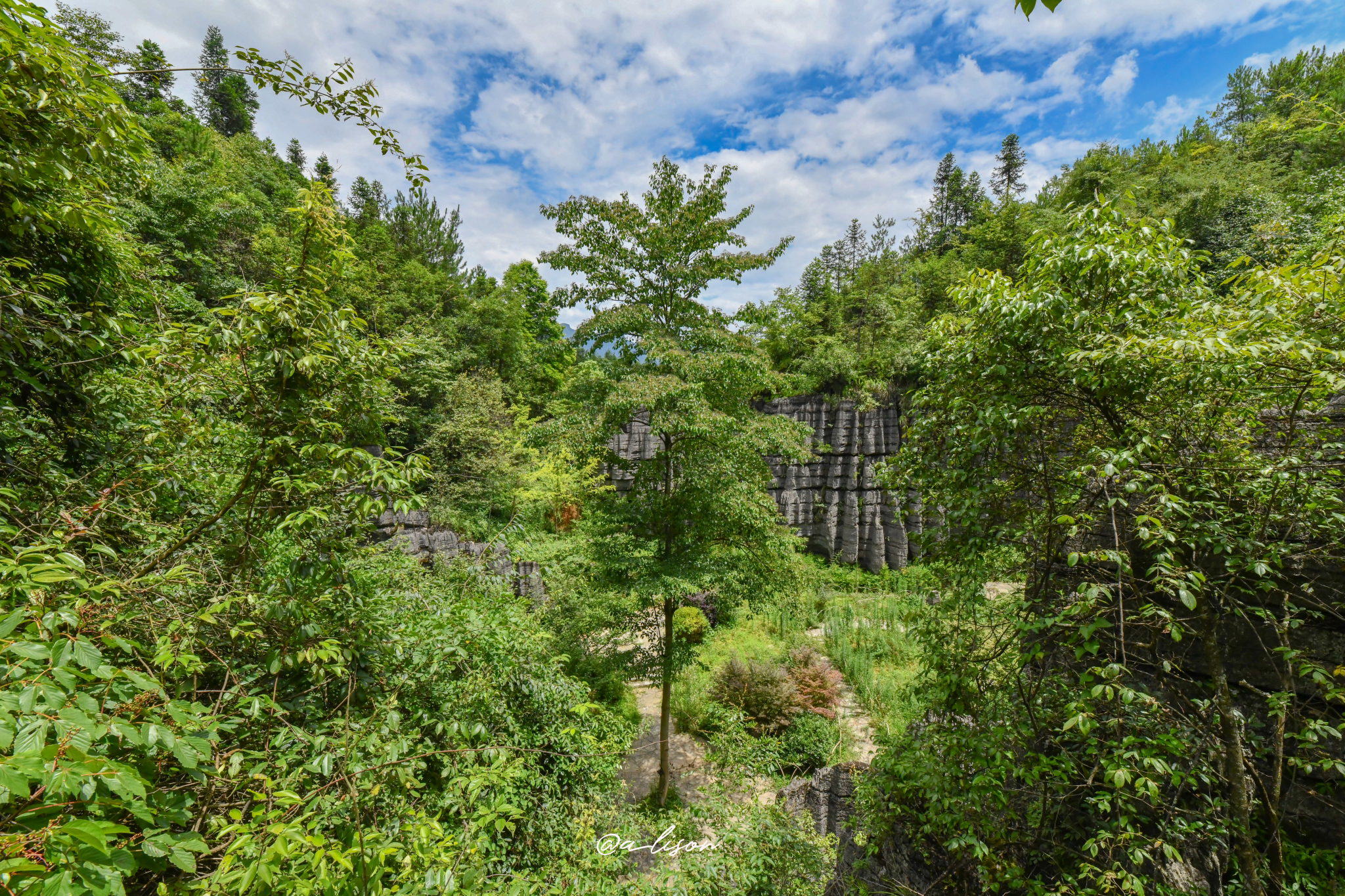 目前开放的有青龙寺、莲花寨、磨子沟、九龙汇四大景区。我们是直接坐接驳车在莲花寨下车,莲花寨是四个景区里我认为最好看也是最值得看的景区,特别是里面犀牛沟,绝对是天然氧吧+超凉空调区域,凉飕飕啊凉飕飕!七八月最热的时候到那去避暑蛮好的。不过因为是石林风景区,所以很多楼梯处很陡峭,接近90度角下坡,比较锻炼身体。而且如果碰到刚下过雨有雨水冲刷过,有的路段会比较湿滑所以也要特别注意些,防止滑倒摔伤。