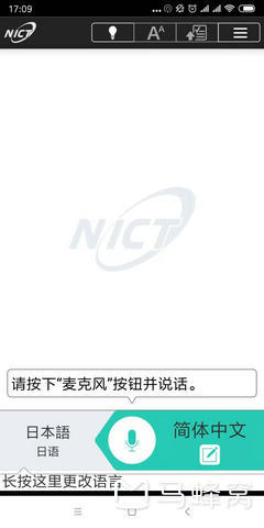 打开以后的界面,很简洁,可以 手工输入文字,也可以语音,按中间那个图标就行是语音输入模式。大概一共有31种语言,甚至还有尼泊尔语、印地语这样的小语种,程序使用流畅,还是不错的,比同时手机里装的那个有道要小巧,运行也快得多。