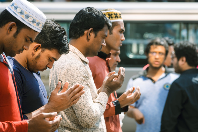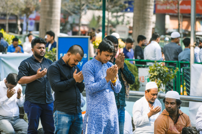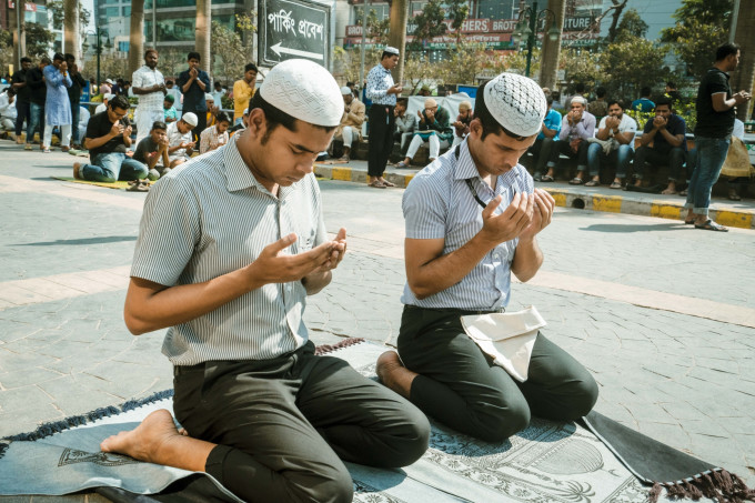 从商场出来遇到了周五的街头祈祷,感觉真的是个很有趣的现象,在被人力车,突突车,汽车,卡车挤满的达卡街头,祈祷钟声响起来的时候整条街就跪满了信徒,然后交通处于静止状态..