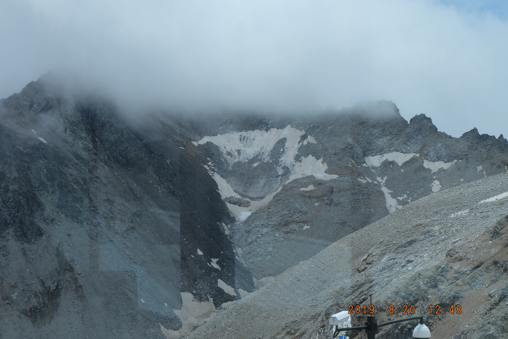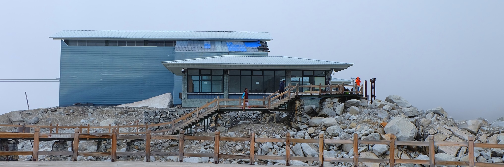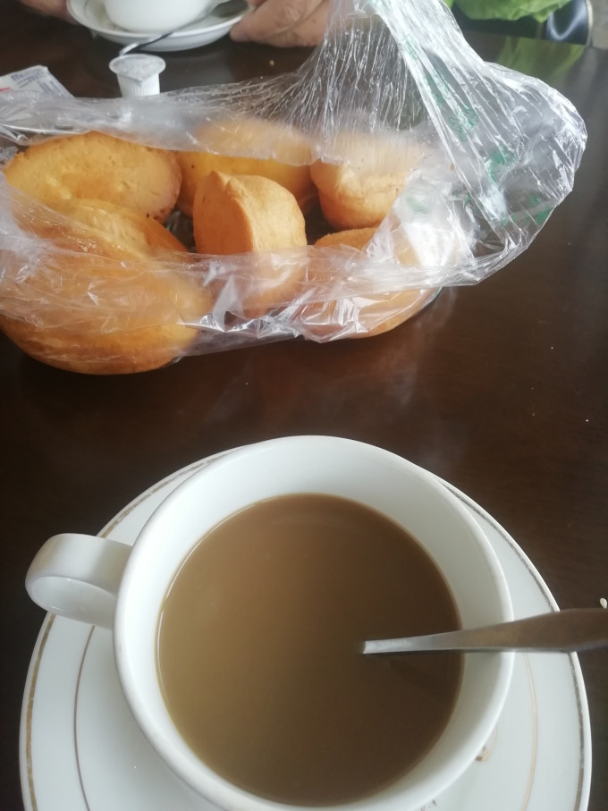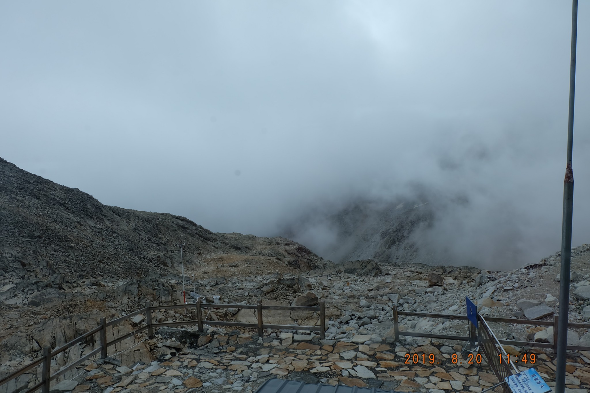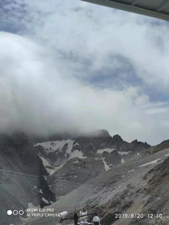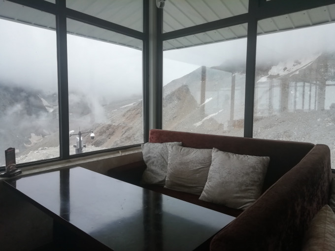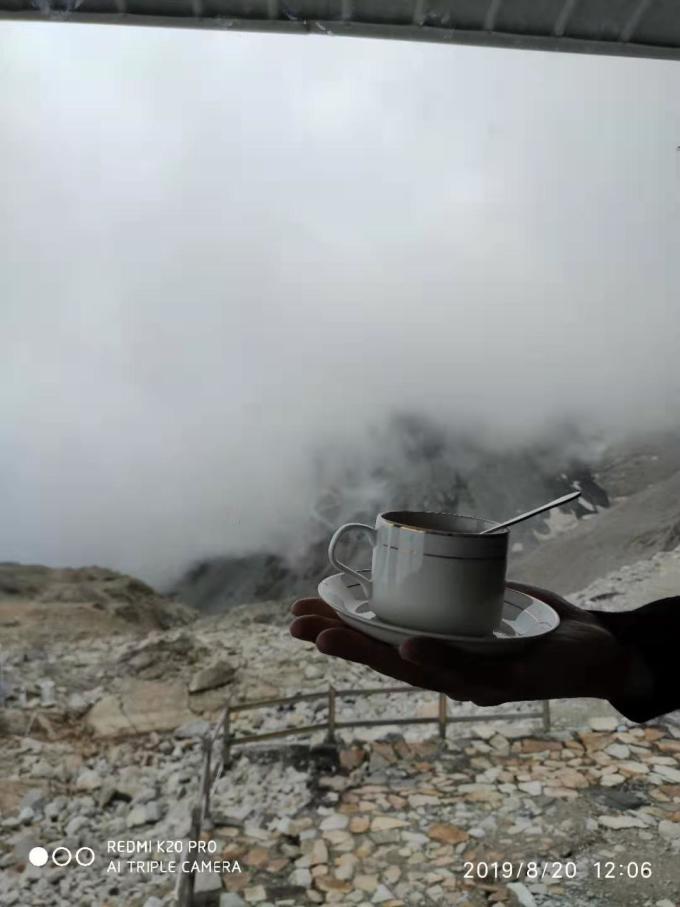 我们自带的点心配咖啡。外面太冷,转一圈,拍几张照片,在这里面歇息,喝咖啡,吃点心,看风景,感觉也不错。雪山冰川隐藏在浓雾里。