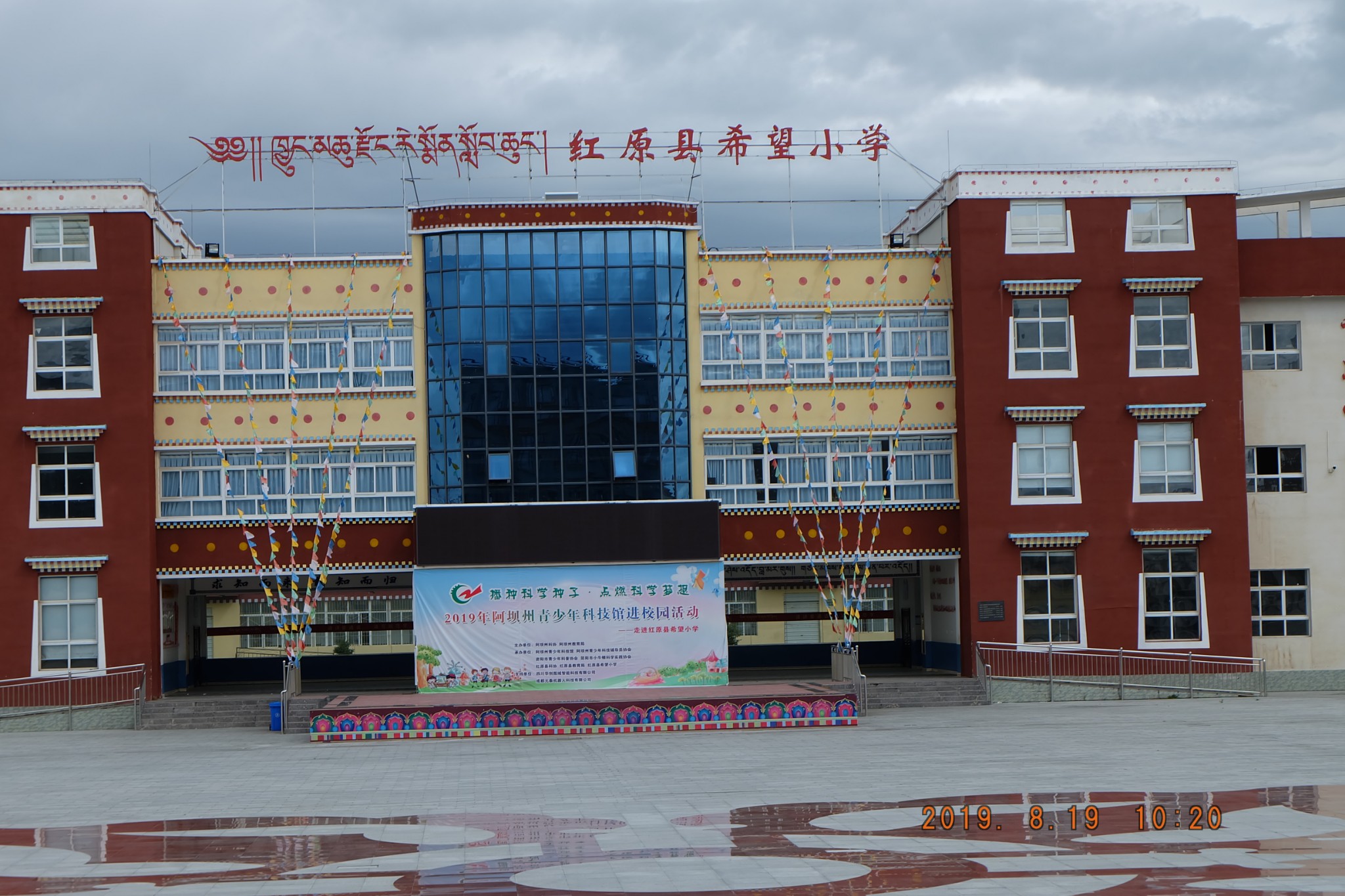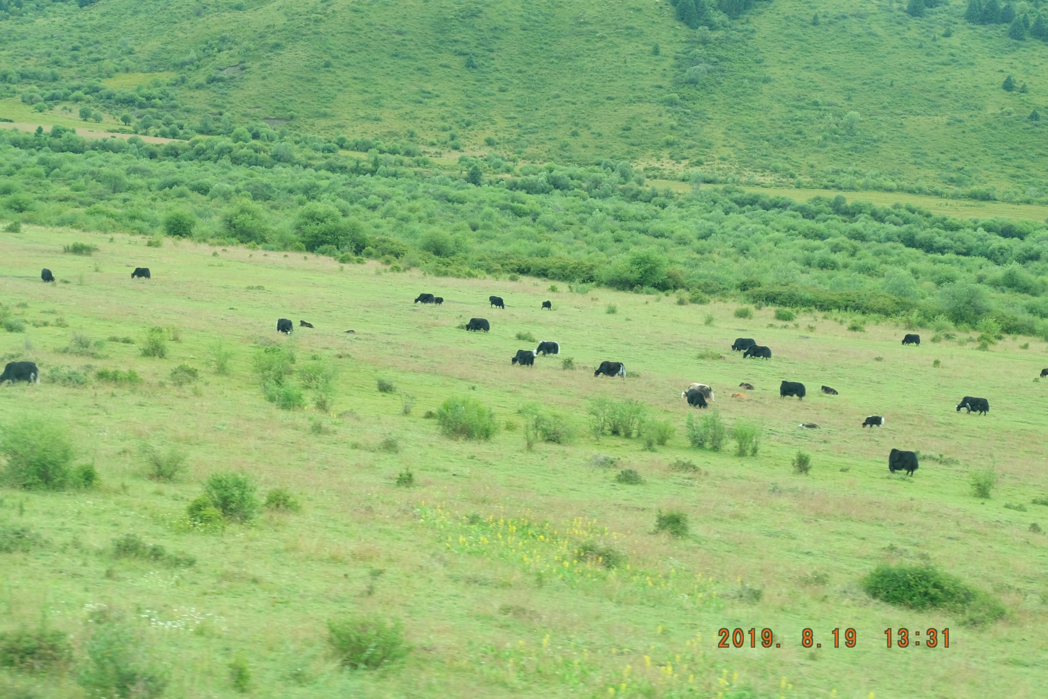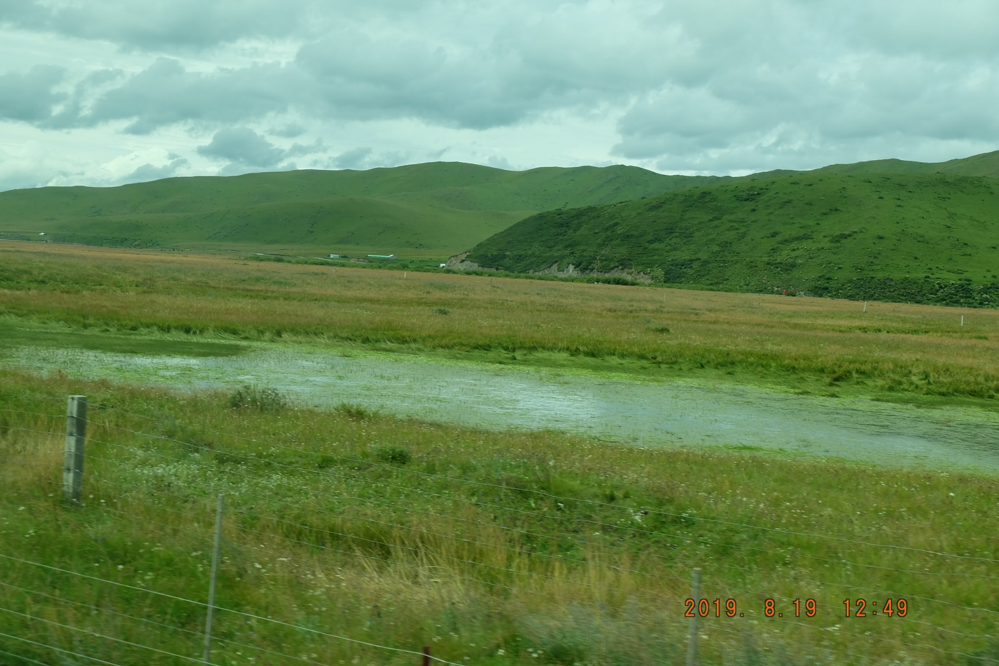 八月十九日早上在水景湾山庄用过早餐后,老板帮忙叫的车过来接我们去红原坐班车前往黑水县城,到红原县城每人三十元,不是包车,车上还有两个藏民。一个小时左右就到了红原县城,快十二点班车才到,其实在唐克应该也可以坐到班车的,不过红原是县城可能过路的班车多些。经过红原草地的时候,想起了小时候学过的课文《金色的鱼钩》,红原就是纪念红军长征经过的草原。