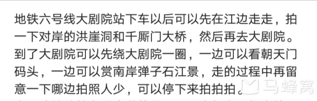 (3)因为我之前来过重庆,所以去过洪崖洞等景点。之前看到大众点评上说,在大剧院可以看到两江汇流,所以就想来看看。夜里,在江边端坐,吹着海风,看着轮渡,见着这霓虹灯彩,也很是惬意。除此之外,这里还是一个拍有趣照片的地方,只要你能发挥自己的想象来凹各种造型的话。(ps:如果你是初来重庆,下面我附上图片里的行程,大家就可以参考一下。)(本图来自大众点评)。