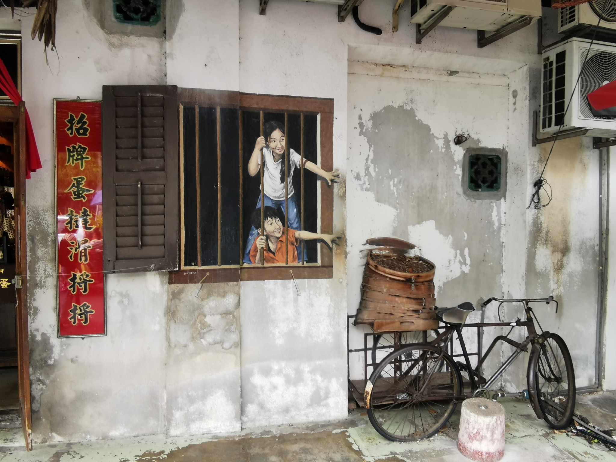 吉隆坡至槟城一共就1个小时航程,很快就到了,槟城机场很小,在机场ATM去了点马币,就准备前往乔治镇了,转了一圈发现机场很多揽客的司机,来之前做过攻略,这边打车用GRAB软件(槟城机场区域不可以使用,可能是保护机场的出租车吧),也可以在机场的一个柜台买固定的出租车票,我买的是机场到乔治镇(任何一个下车点,只能一个小车点,如果拼车的话可以在和司机谈价),45.5马币,顺便免费带了两个广州的小姑娘(之前在值机大厅坐我前面,我看她们在机场门口大眼瞪小眼,不过她们是要给我钱的,我怎么能要呢,在境外人一定要团结),大约半个小时吧就到了我订的酒店,一个评分很高的酒店两晚上500多(在此不对行程酒店介绍,我没有收宣传费),房间不大,复古型的,离汕头街不到1公里。