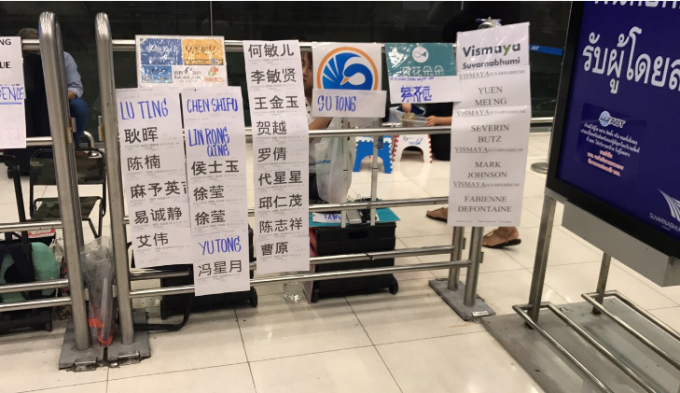 第一步,拿到签证后,取完行李,沿着通道走出来就看到一堆接机的牌子,找到自己的名字给接机人看订单。