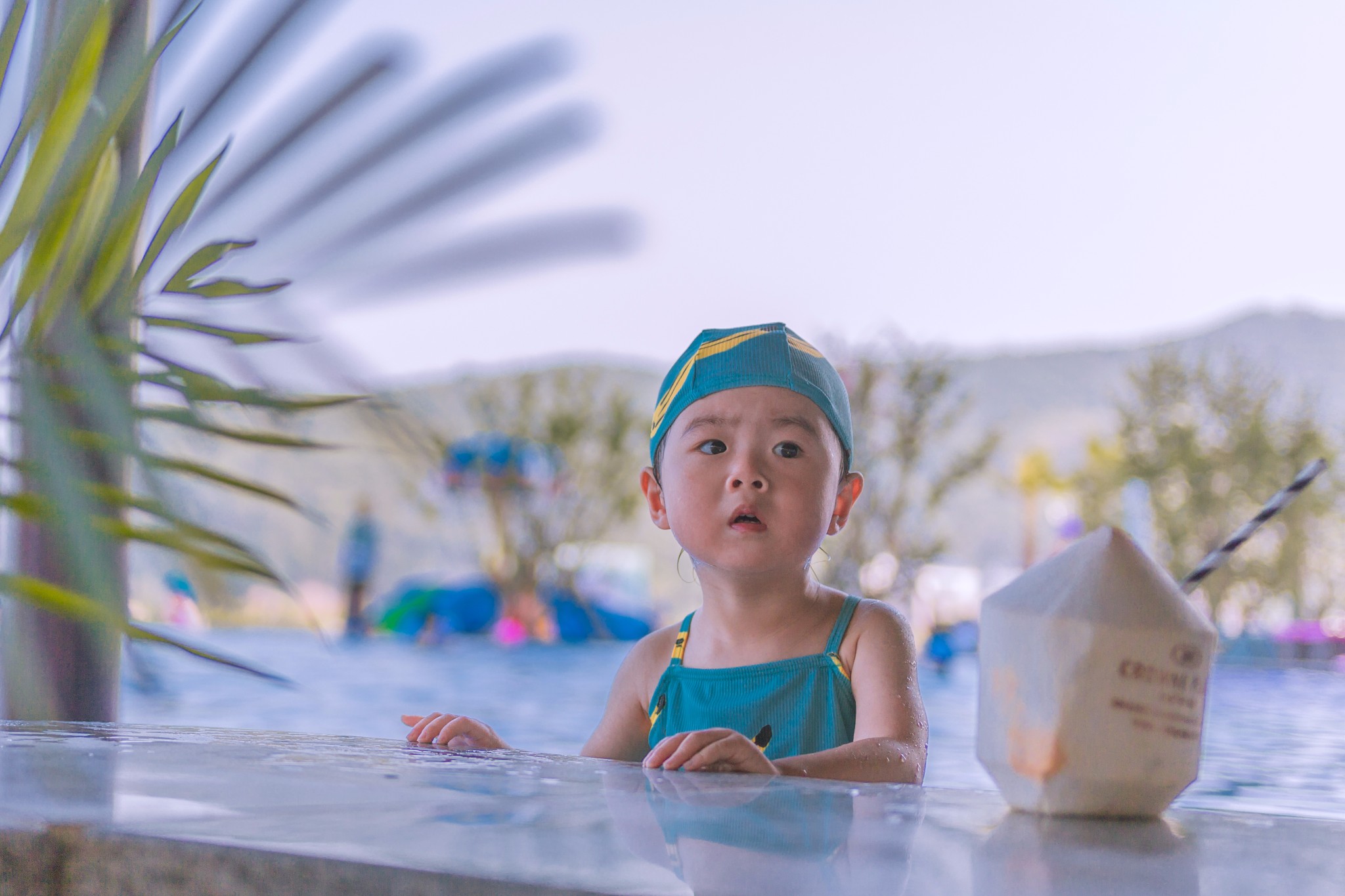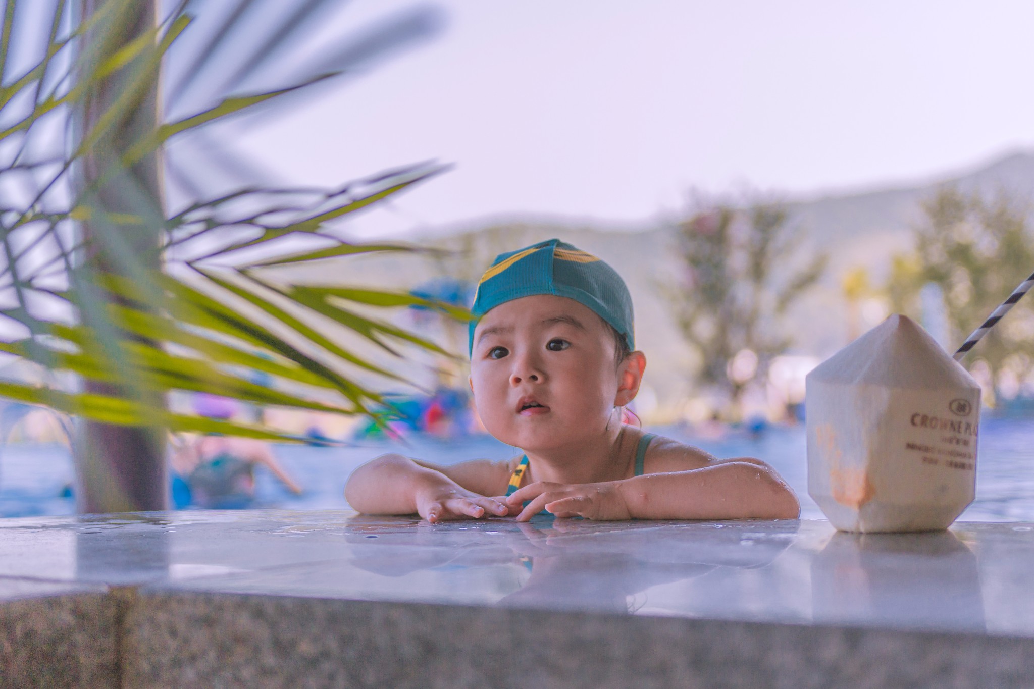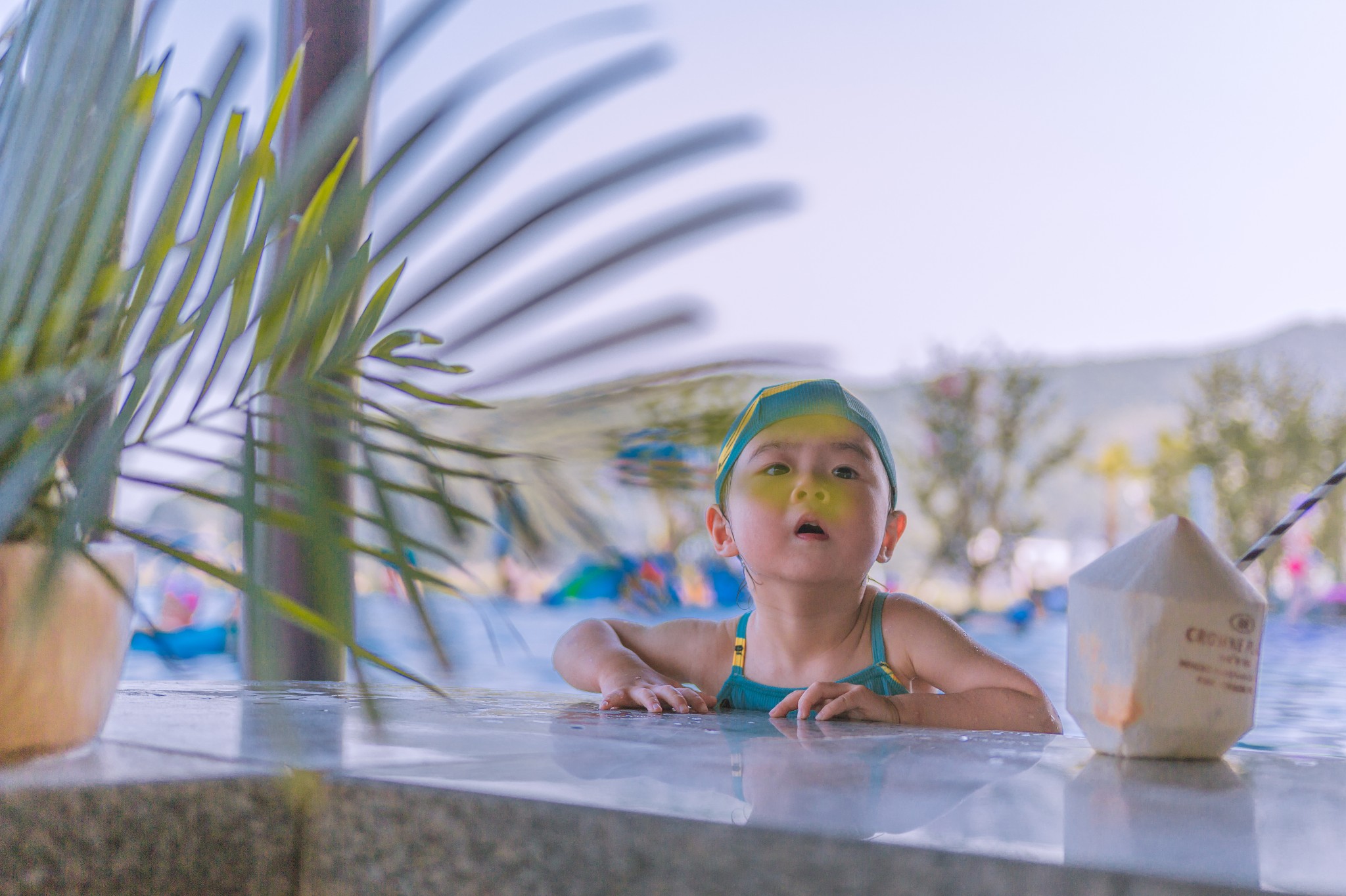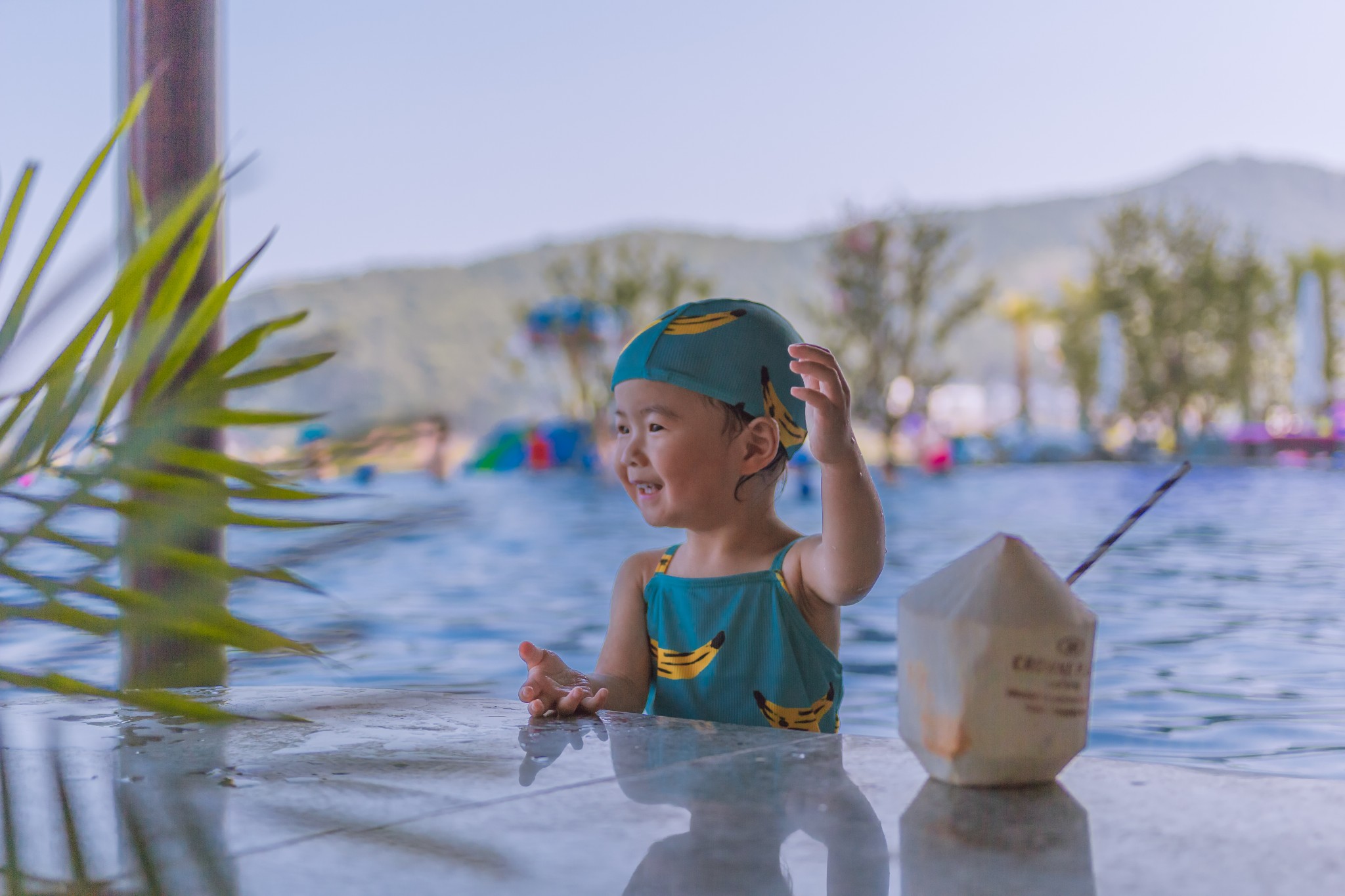 酒店的泳池在酒店的东边,到了下午太阳西斜,酒店的楼就刚好为泳池挡住了太阳,这时,池里的水已经被太阳晒得暖暖的,正好适合小朋友下水游泳