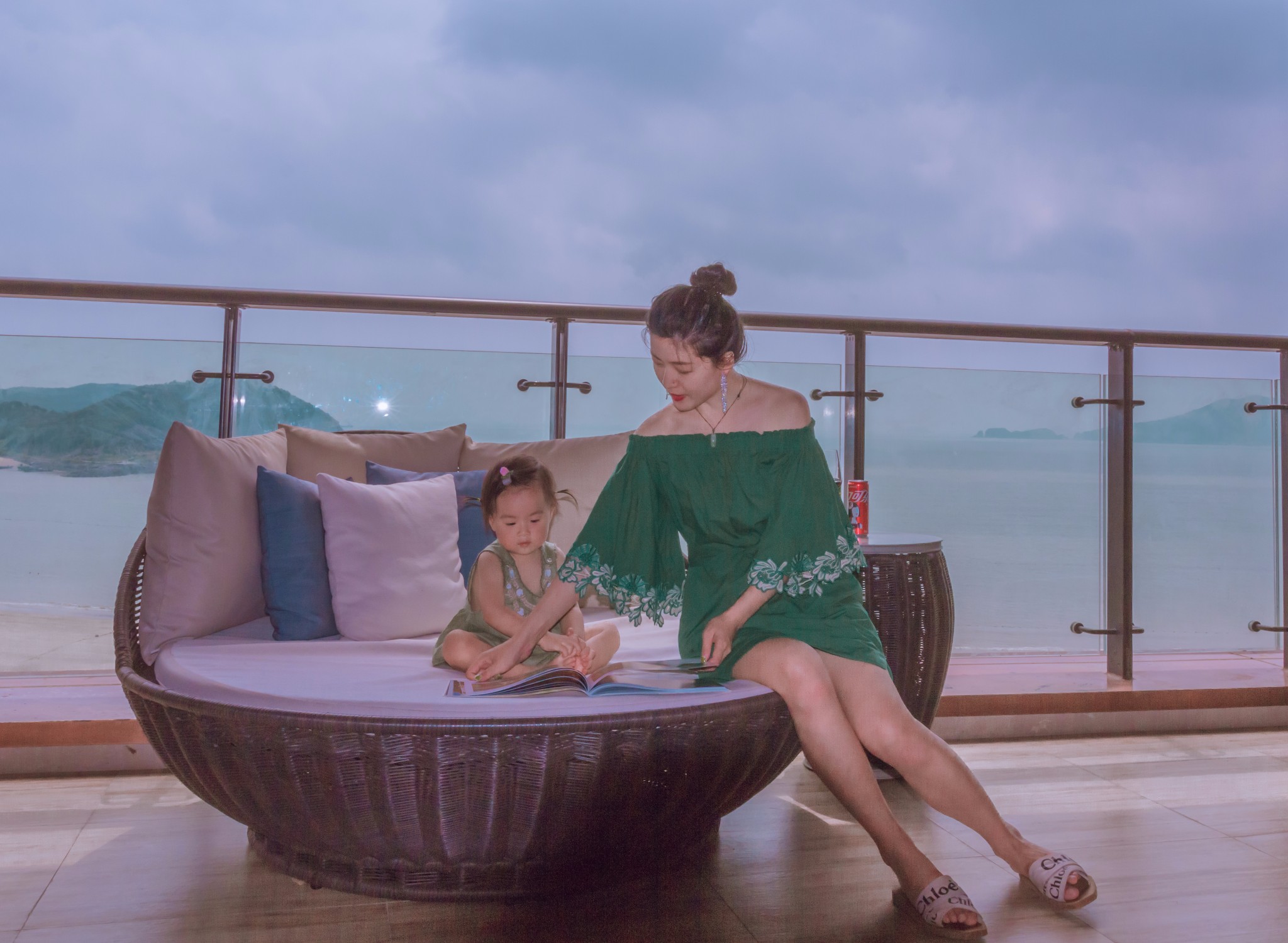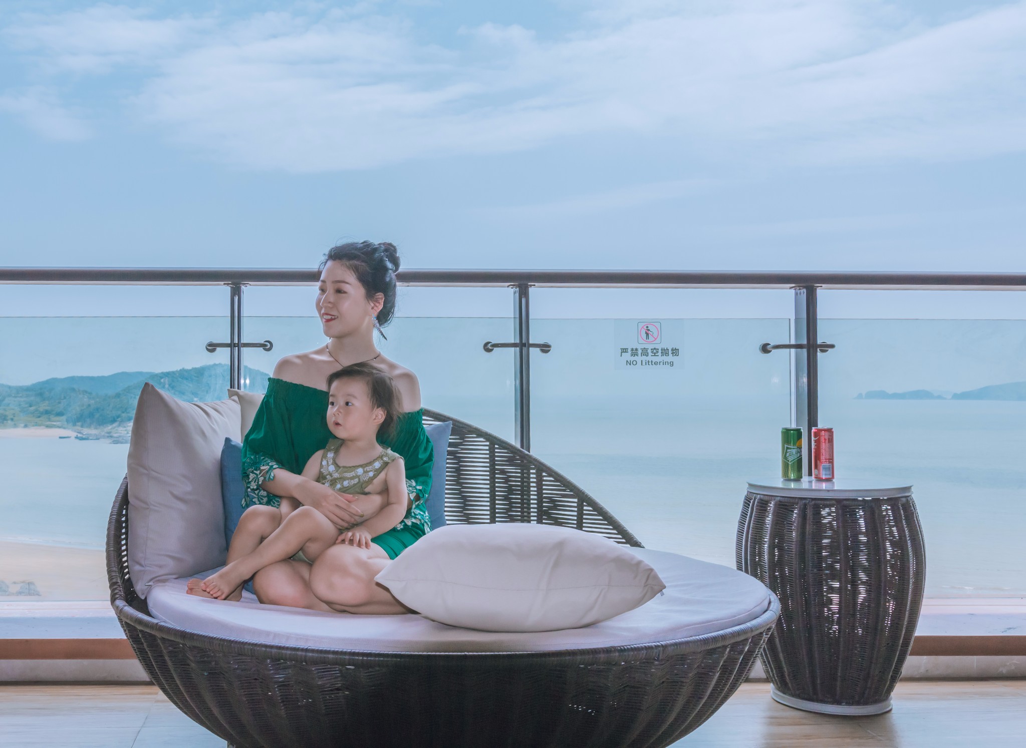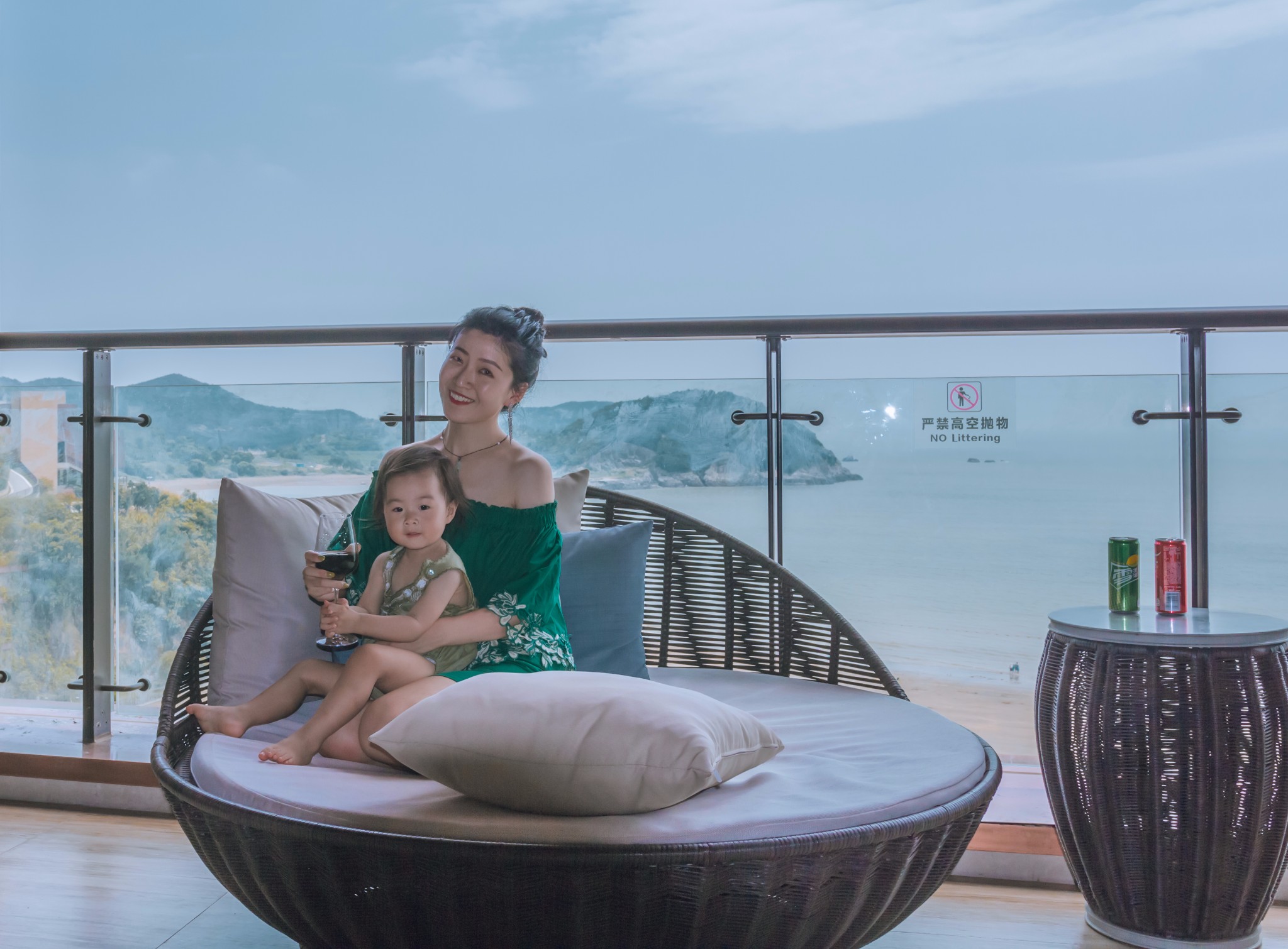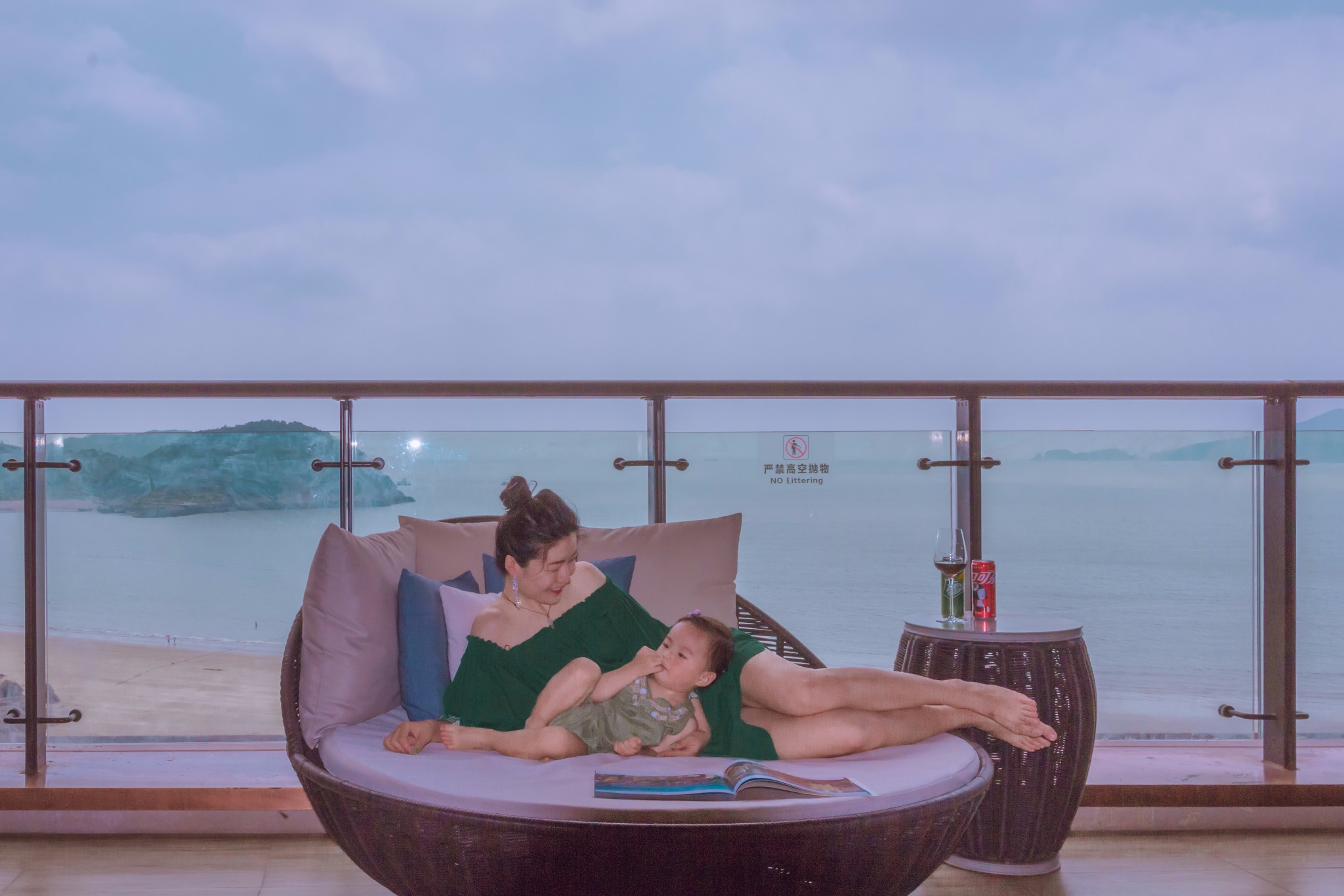 我和丸子一起坐在阳台上,吹着海风,享受着属于我们的亲子时光