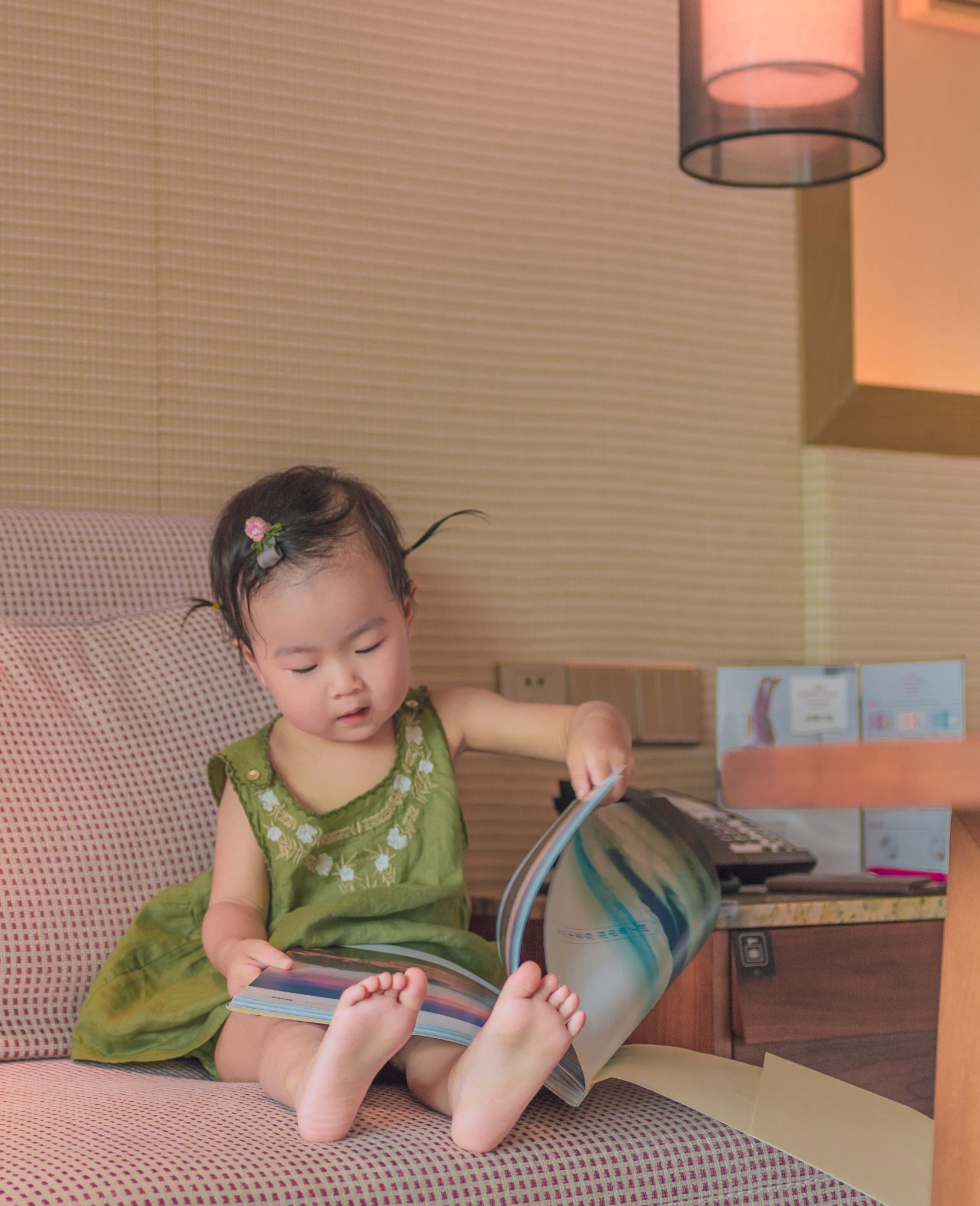 认真看杂志的样子像个有模有样的小大人了