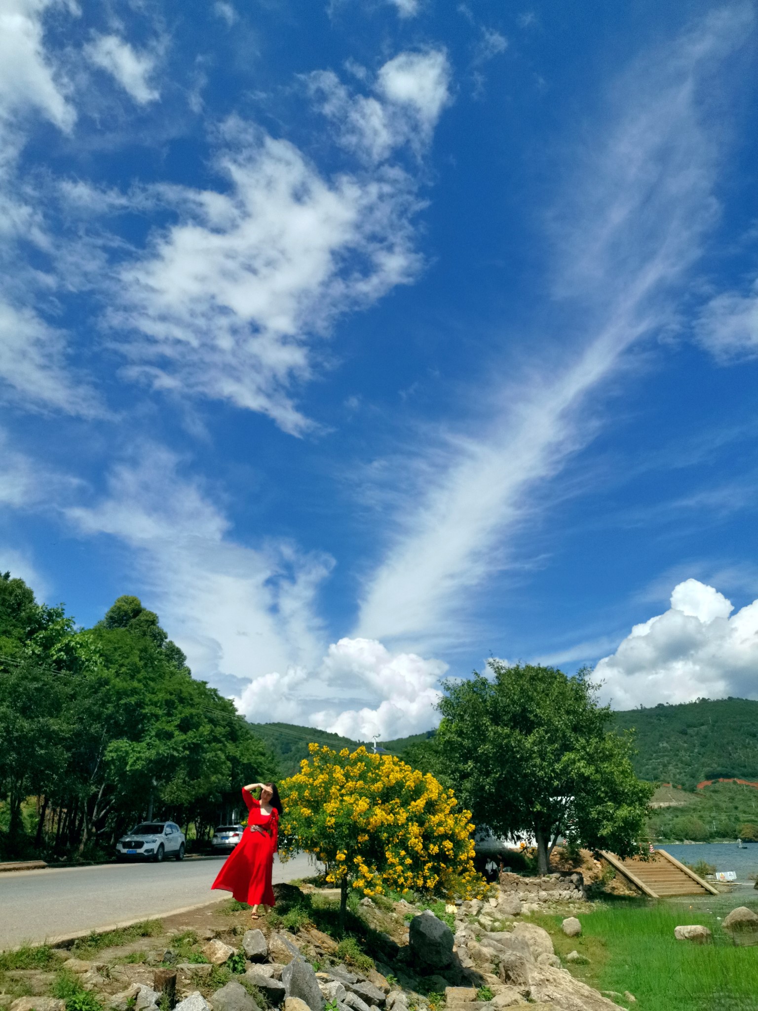 附近50米之遥就是喜洲有名的网红公路,不同颜色的吉普车加打扮艳丽的青年男女正忙着拍旅拍,骑马远观也是一道靓丽的风景啊。