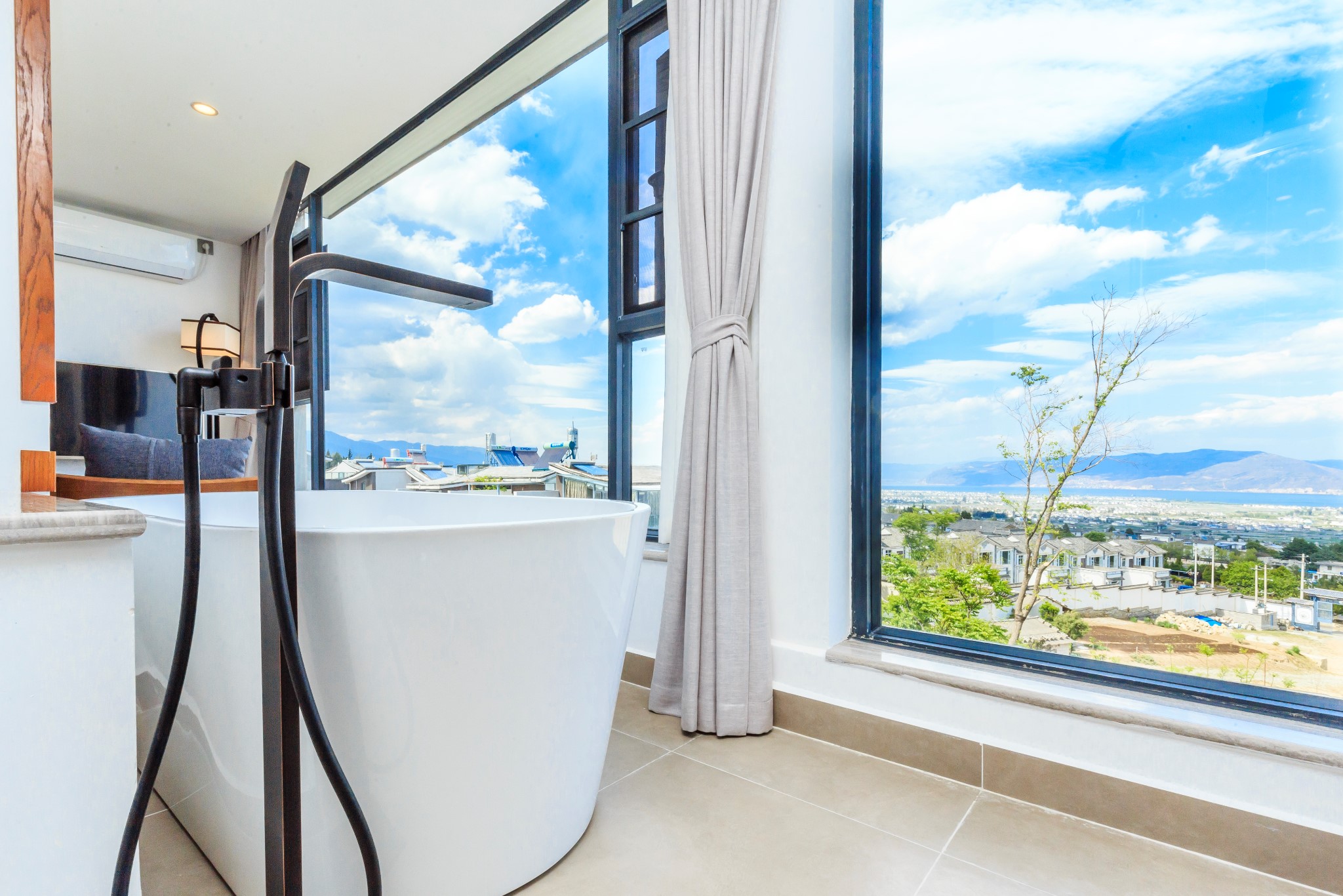 到了双廊古镇北门位置一般都不下车,而是顺着环海东路继续往前行驶,带队的摄影师会告知有一个可以俯瞰整个双廊全貌的观景平台,那里是很值得驻足赏景的。玉几岛、南诏风情岛一览无遗,洱海边上的太阳宫及月亮宫也忽隐忽现,欣赏双廊全貌这个位置是非常不错的。