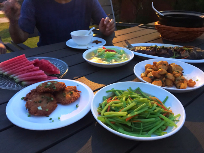 每个大人80块的标准(小孩子不算),每顿吃的6菜一汤,真的可以吃出农家菜的味道,西瓜是拿山泉水冰镇过的很清甜。主厨娘是老板娘的妈妈,做菜好吃,种类丰富。厨房全玻璃的设计,看得到干净卫生,每顿都吃到扶墙。