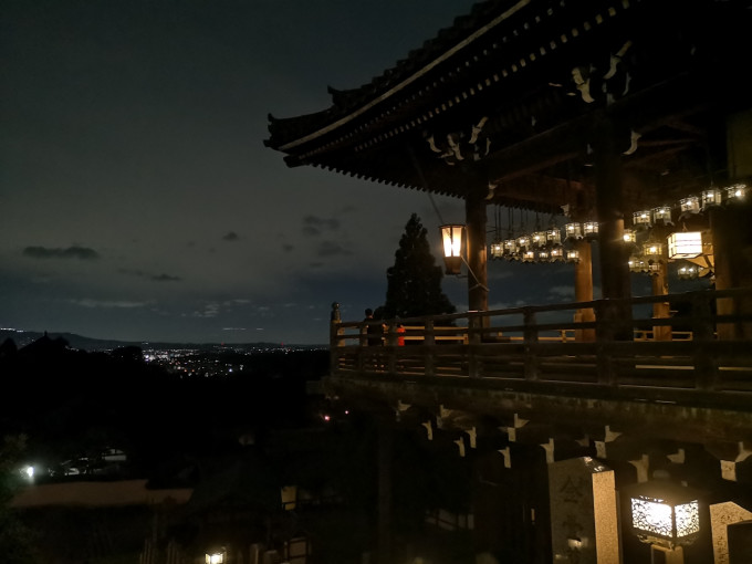 二月堂白天我已经到过一次,傍晚回旅店的时候老板告诉我这里晚上很美可以看落日,可惜那天傍晚的天气不好,落日没能看到,但夜晚亮灯以后真的非常别致而有韵味。