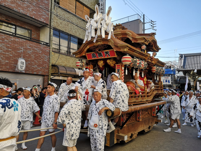 天神祭在25日迎来高潮,下午在天满宫神社进行陆渡御,18点在天满桥有船渡御。我中午12点就到了天满宫等候,恰好碰到了工作人员合影,便拍下了这一幕,后面还有幸帮工作人员拍了一张合影。整个祭典庄重而欢乐,令人终生难忘。