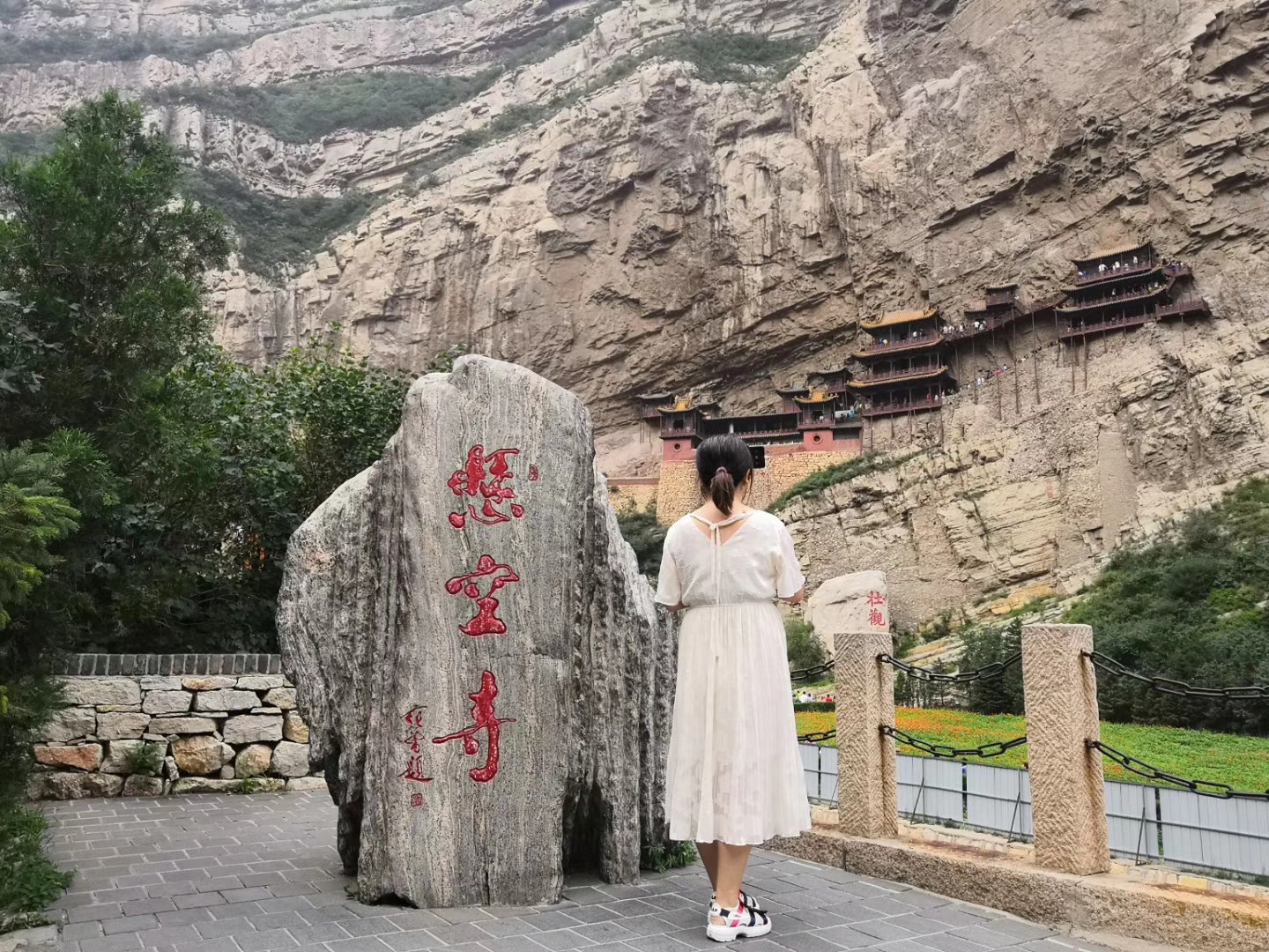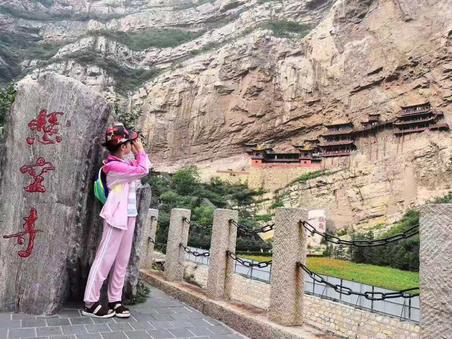 7月28日,第二天, 悬空寺和恒山按照位置来说,应该属于太行山北段的一部分(没仔细查,感觉应该是哈哈)。早上8:00从浑源县吃完早餐出发,8:15到悬空寺。开车去悬空寺和恒山的路是一条,按照指示牌向下走进入山谷,是去悬空寺的路,向上继续走,过了一个隧道,就是去恒山的路了。9:00出悬空寺去恒山。悬空寺可能是我们去的还算早,虽然是暑假旺季,人不是很多,我们没有登楼,所以时间用的比较少,如果登楼时间多留出来四十分钟也就够了。出悬空寺开车去恒山,大约9:10到山门,买完票开车到山上停车场,大约9:30.开始爬恒山,爬到十点多,孩子身体有点不舒服,果断放弃继续爬山。(我们之前去过嵩山,苍岩山,泰山,凤凰山,爬恒山时候感觉风景也太一般了,也是我们没有坚持的原因)10:30下到停车场,11:00回到浑源县。回浑源直接去了小媳妇凉粉店,顺便也是让孩子休息。十二点孩子无恙,我们也在凉粉店吃完了中餐,再次出发去云冈石窟。下午13:40到云冈石窟,14:00进景区,16:00出景区,电瓶车往返。17:00到大同宾馆,办理完入住,三个人骑共享单车去大同古城墙,17:30到城墙上。18:00突然下起小雨 ,于是打车返回大同宾馆吃晚饭。吃过晚饭19:00多点去宾馆内部的游泳池游了一会儿,然后回去觉觉。充实的第二天完结。