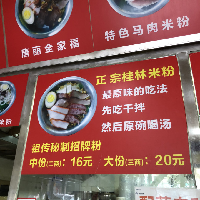 桂林米粉最有名的是马肉米粉。它用特制的红烧马肉作配料。