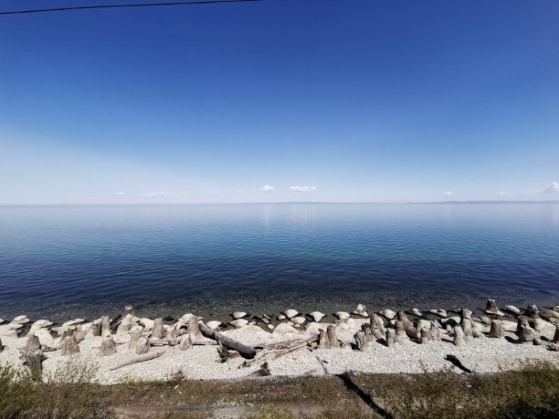 贝加尔湖,被人们称为西伯利亚的蓝眼睛,,也是K3入俄后最值得关注的景色!一早醒来,列车已经在乌兰乌德停靠了好一会儿了,由于临近发车,我也就老老实实呆在车上。列车驶离乌兰乌德大约2小时候,贝加尔湖终于映入眼帘,简直就是碧海蓝天!