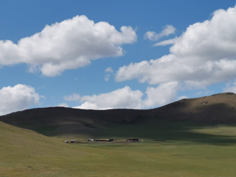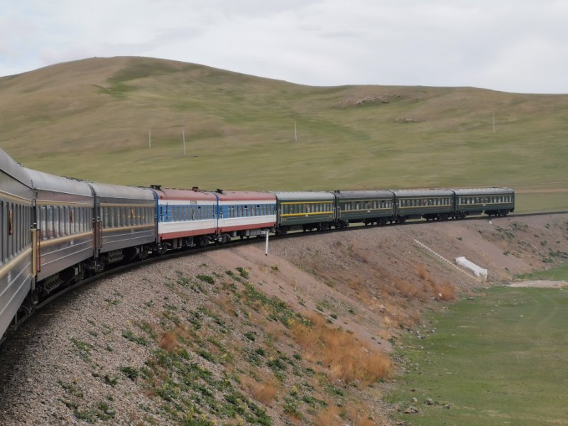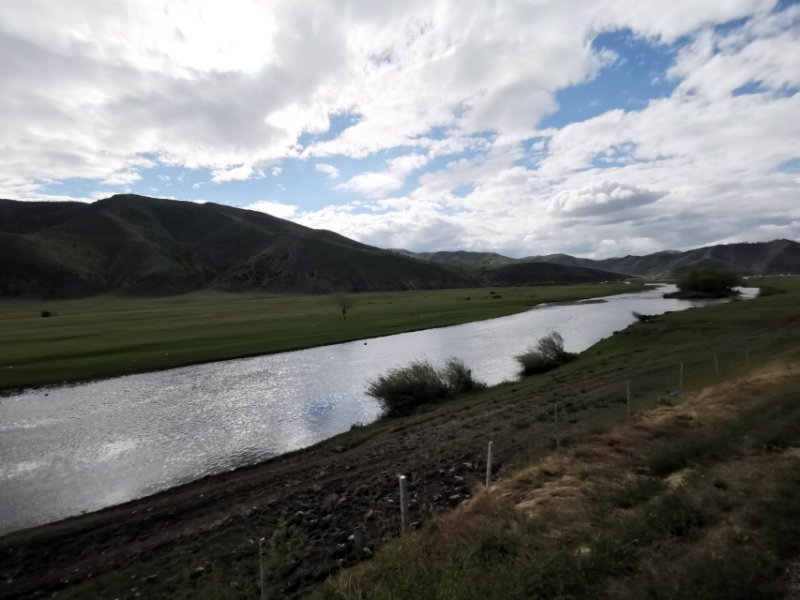 吃完蒙餐后我们回到了车厢,此时窗外的地貌已经从乌兰巴托周围稀疏的草场变成了一整片碧绿的草原,呈现在我们眼前的景色正如欧阳修的风乐亭游春中所写的长郊草色绿无涯,堪称绝美!Windows桌面也不过如此!看远处!几个蒙古包坐落在苍茫的大地上,洁白的云彩充实着浩瀚的蓝天,是不是很美呢?那种浑然天成的感觉油然而生!(看着这个景色,鄙人诗兴大发!!)