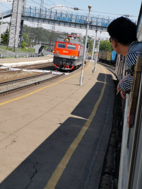 在优美的环境陪伴下,列车到达了毗邻贝加尔湖的大城市,伊尔库茨克。到此,同一车厢的上海老哥老姐们也结束了他们的K3之旅,准备开始下一段旅程。在列车到达伊尔库茨克站时,乘务员会提醒你不要出站(当然啦,每一站都提醒),还有出口处有军警,不要拍他们哦,他们可是带枪的!我们在这站碰巧遇到了列车长,合个影吧!照片你们见过!当然,这张更huan'l