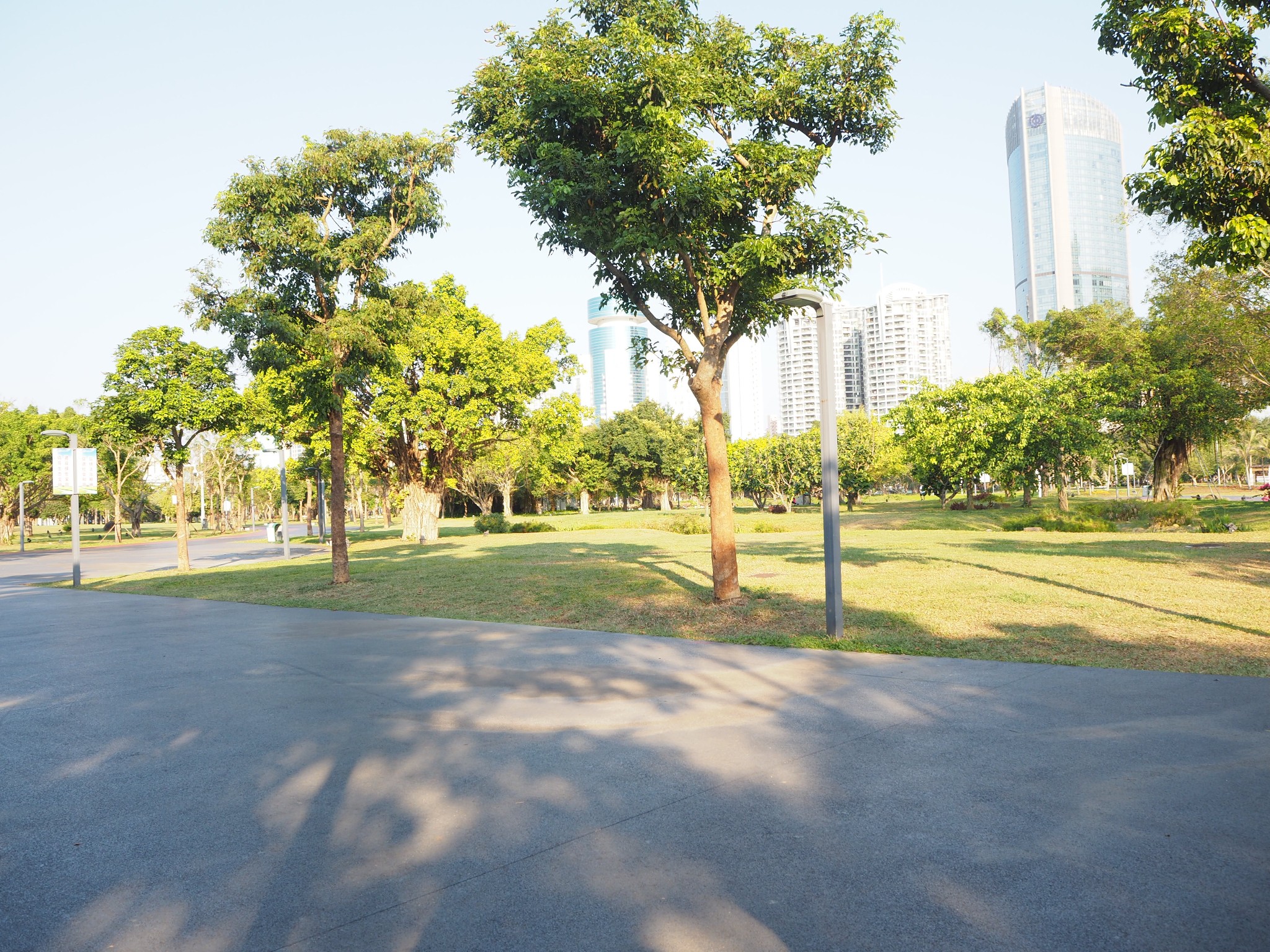 绿化贼好,远处是一眼望去好大好大好大一片的草坪。