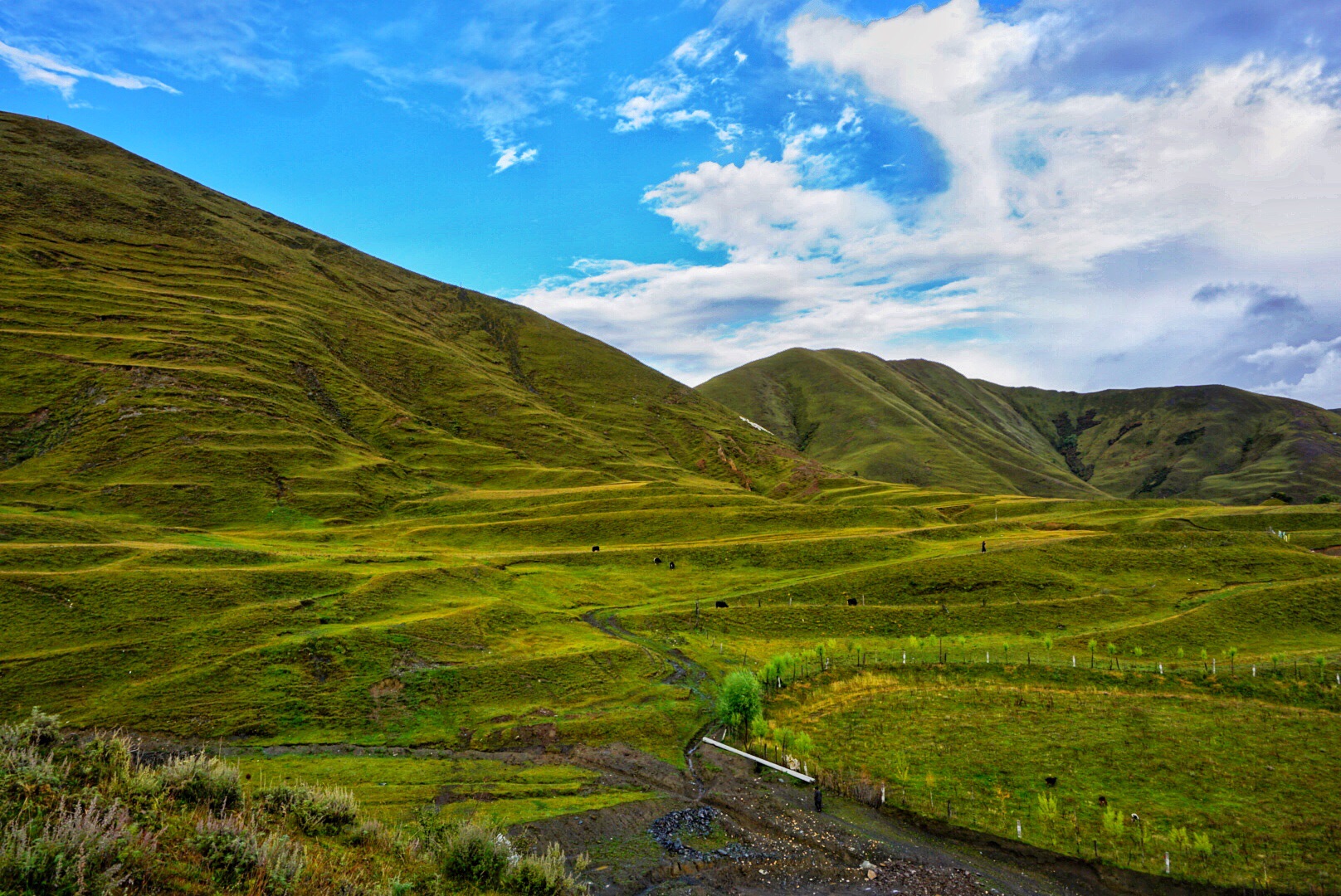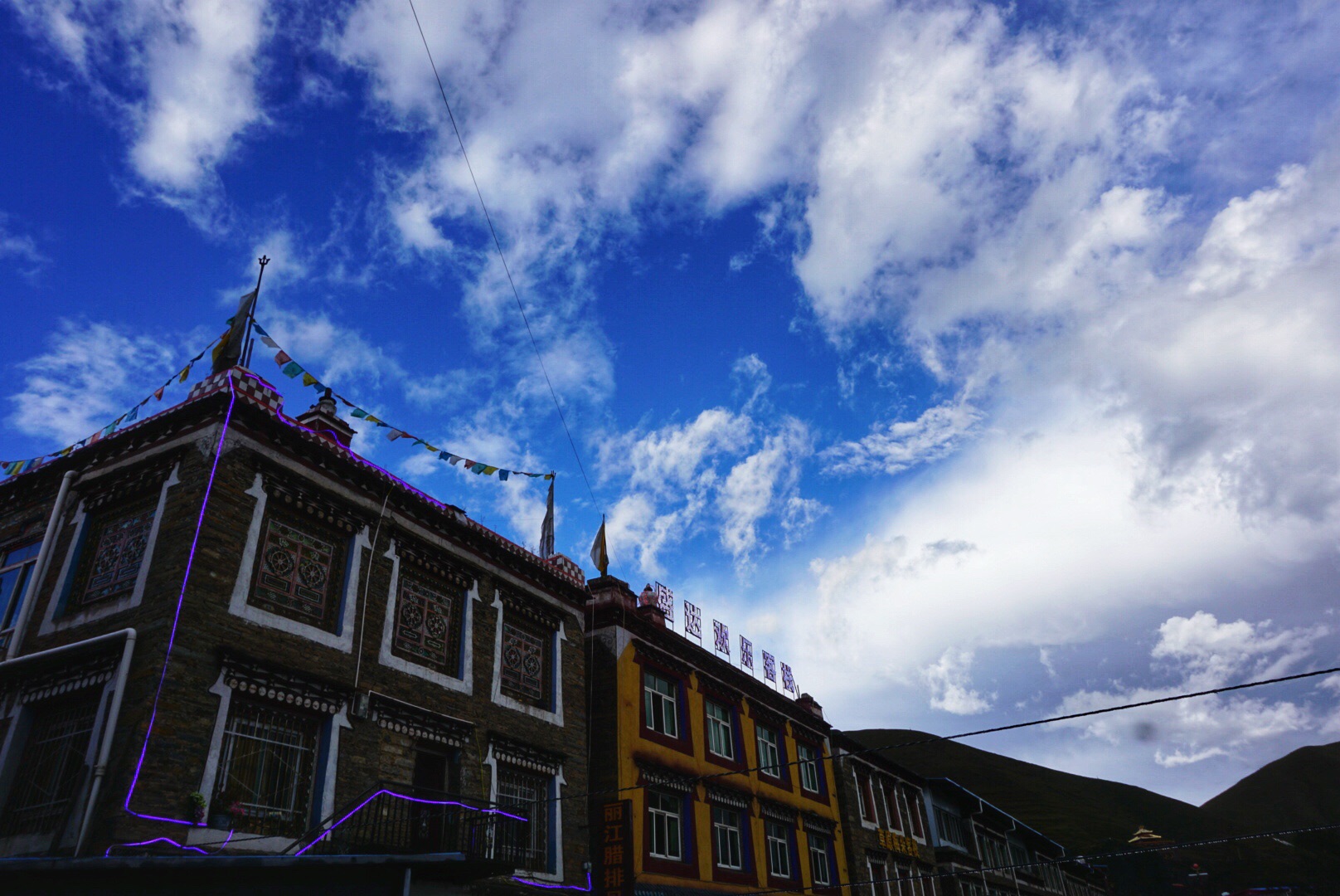 一整天8小时车程,一路阴天或者干脆下起雨。晚上5点半到达新都桥镇,天空忽然放晴,火速带着相机出门。
