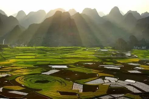 秋天时,一块一块的稻田金黄,在大地上一圈一圈地编织出金色的锦绣,与延绵的峰林,互相映衬,组成这秋日里最诗意的田园画卷。在三百六十多年前,明代地理学家、旅行家徐霞客就曾到过万峰林,相传徐霞客还发出这样的赞叹:"天下山峰何其多,惟有此处峰成林"。