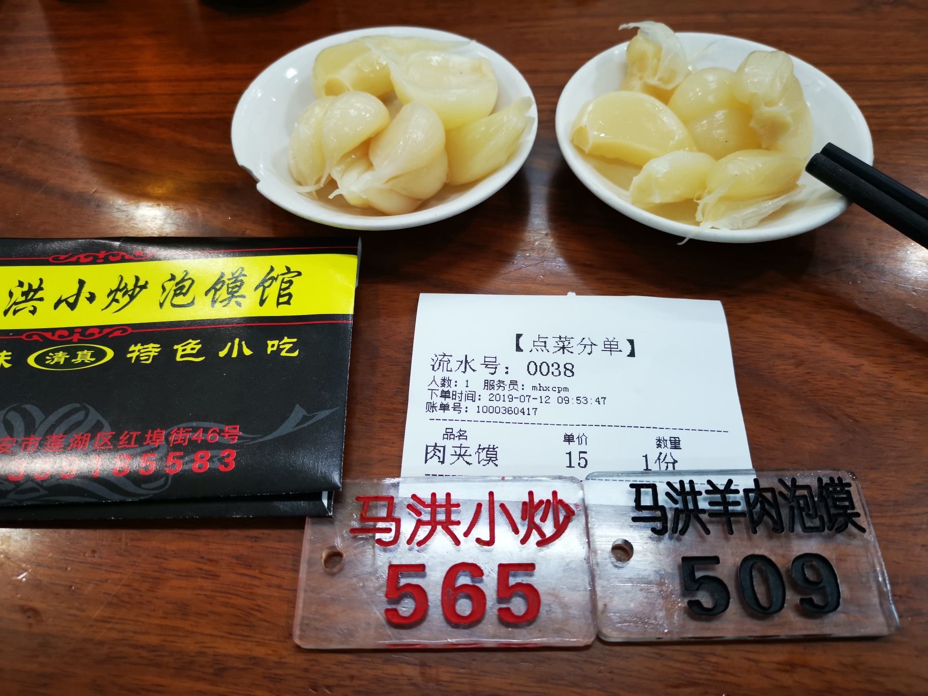 对于我来讲,传统印象里羊肉和泡馍就是泡在羊肉汤里一种吃法。后来在其它吃货的视频里了解到原来还有小炒这种吃法,不过一般都是当地人喜欢。这次来了肯定不能错过。于是我们点了泡馍、小炒还有一个肉夹馍。因为是在一路边吃边走,所以没点太多。
