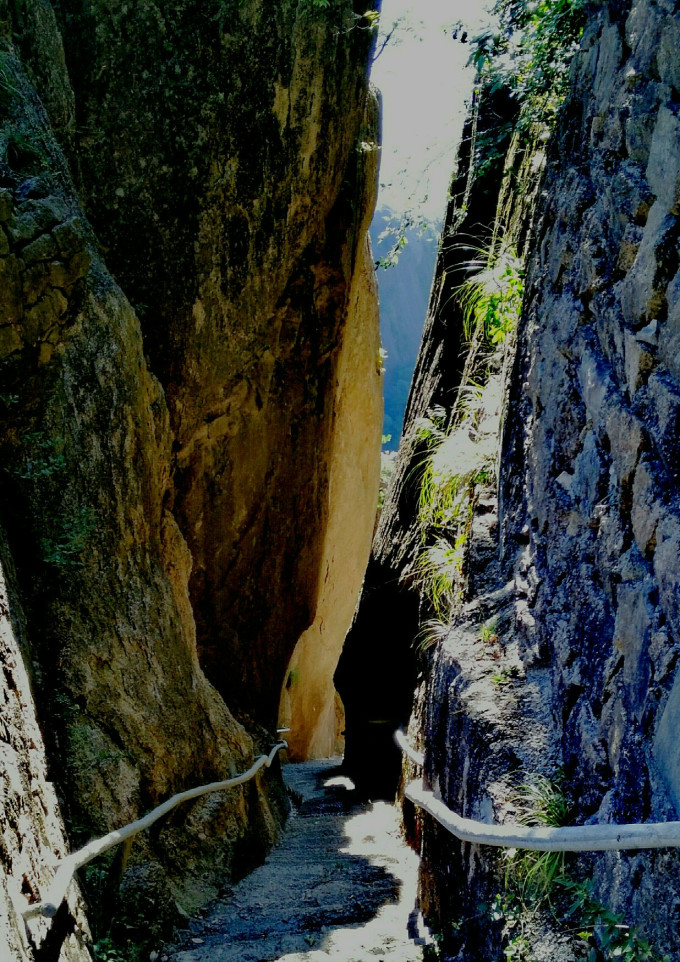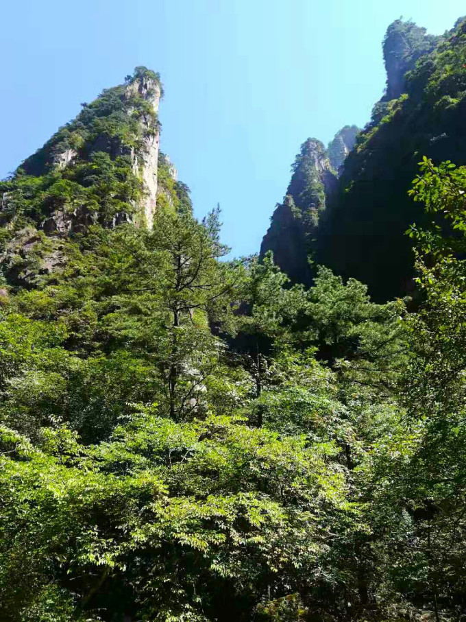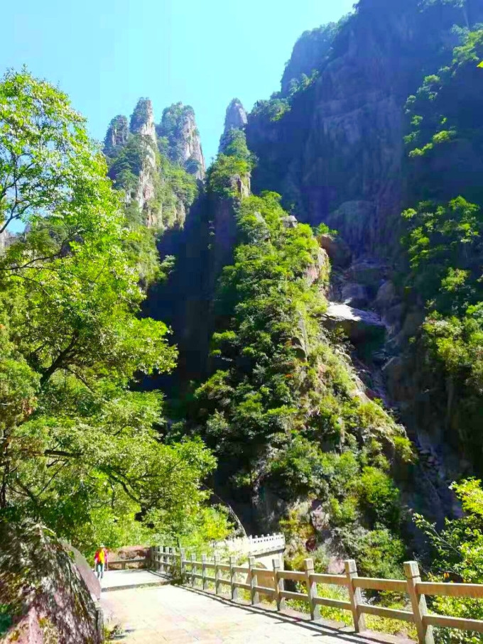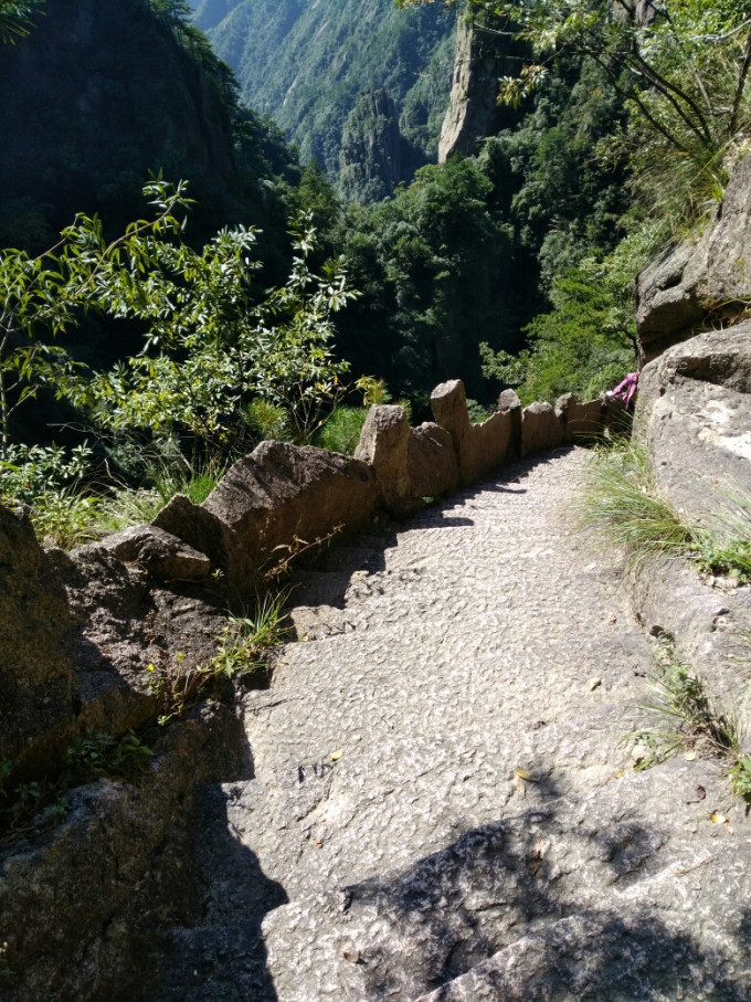 这里有与谷底相通的栈道。海拔落差不大。因安全原因被封。(在一环二环时看到对面耸立的山峰因悬崖峭壁长期风化严重,可能常有落石,)这样,步仙桥的游客几乎没有了。特为从天海顺时针过来也很少。只有少数户外运动爱好者去探幽,成了小众旅游景点。