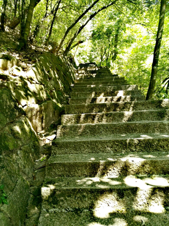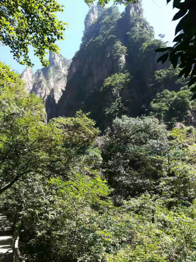 仰视高耸入云的群山。跟一二环平视的感受完全不同。预示后面的路很陡峭。好在平时有跑步运动习惯。并不感觉很吃力。
