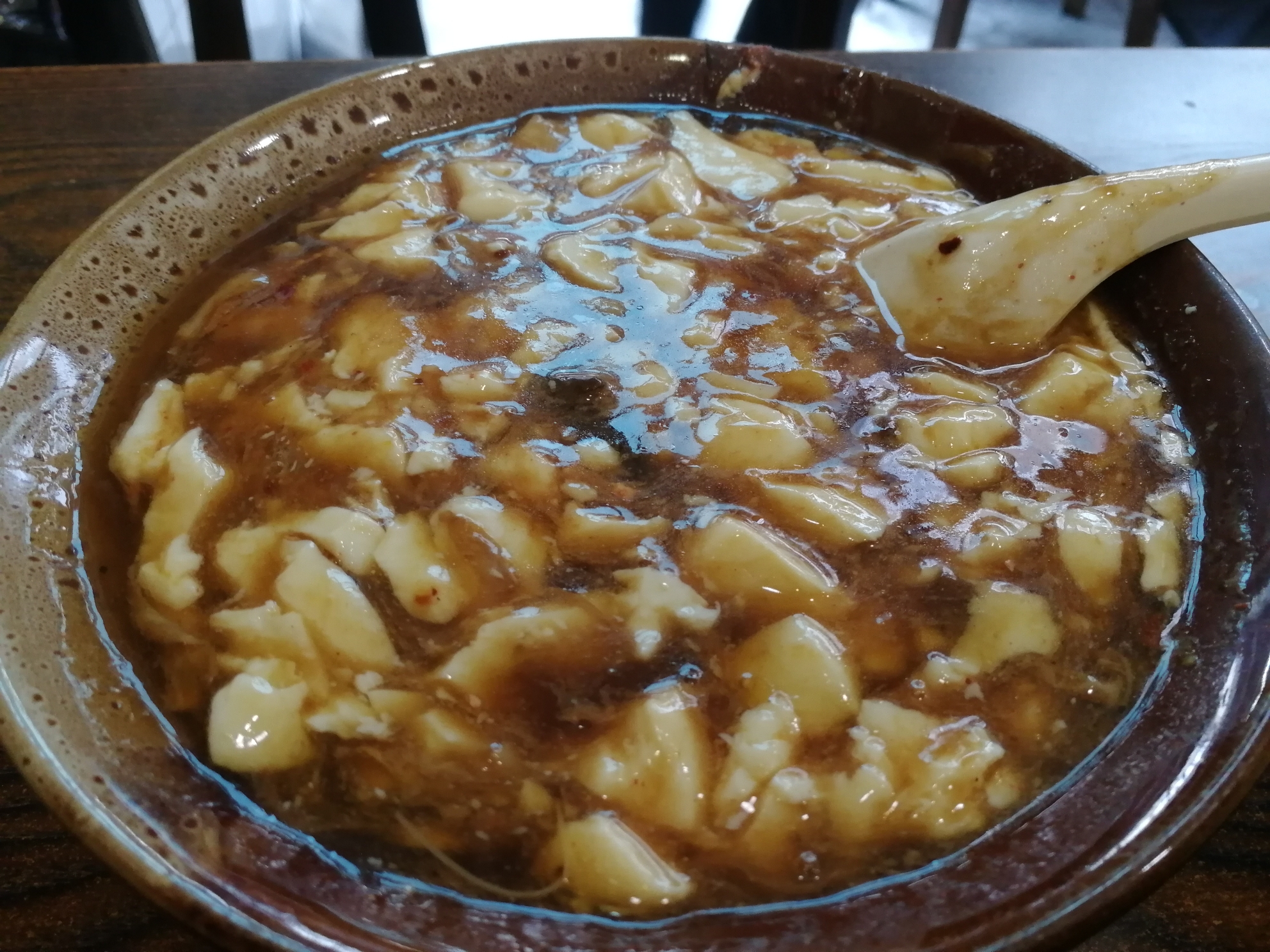 豆腐脑里加了芝麻酱,哇,真的第一次见,真的很好吃啊,料很足啊